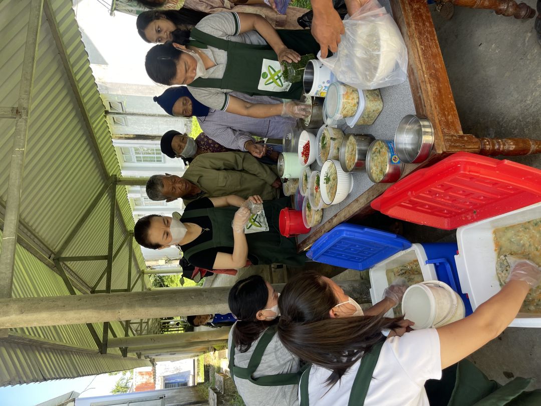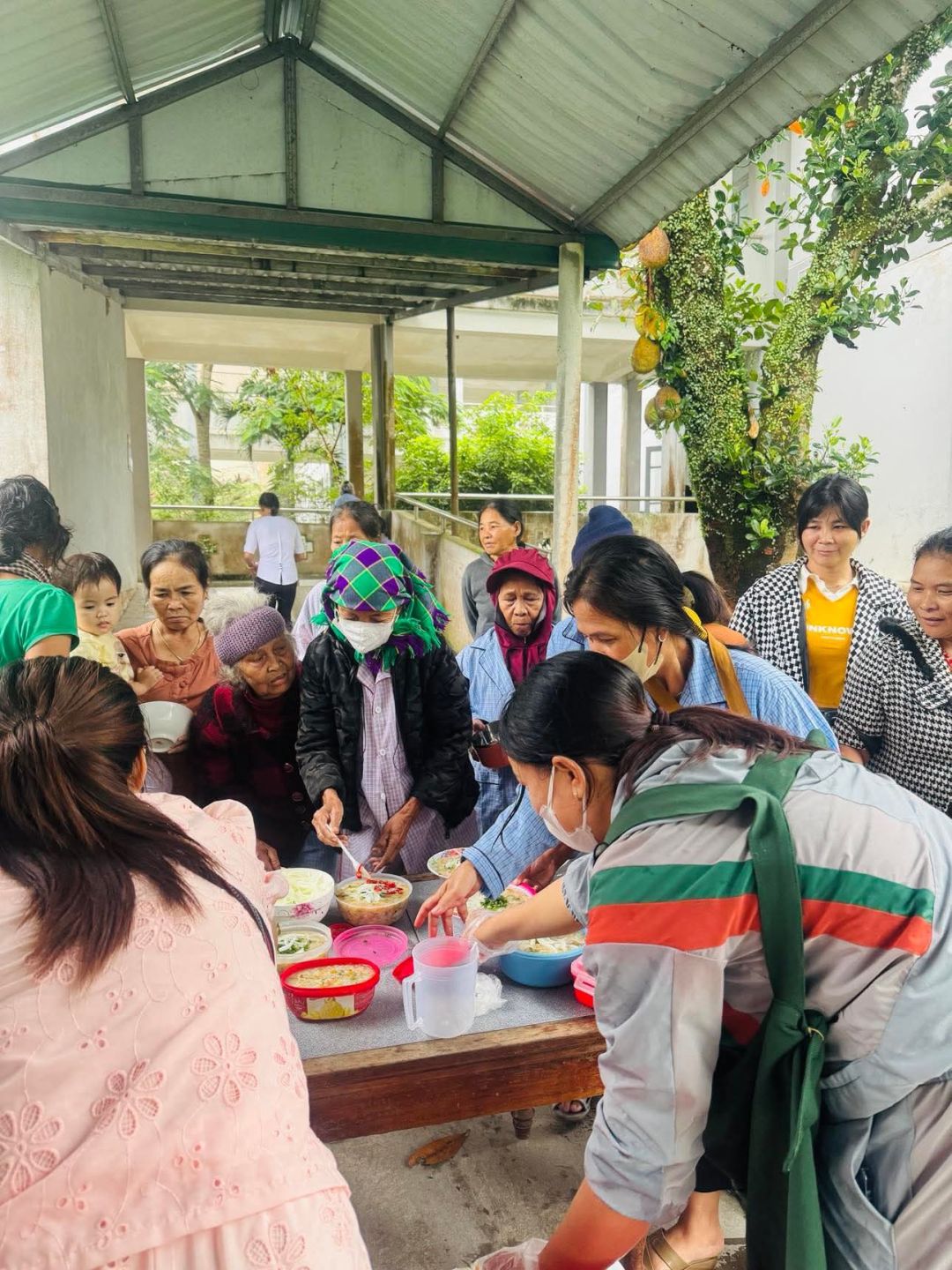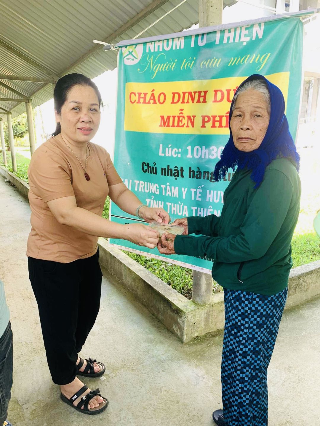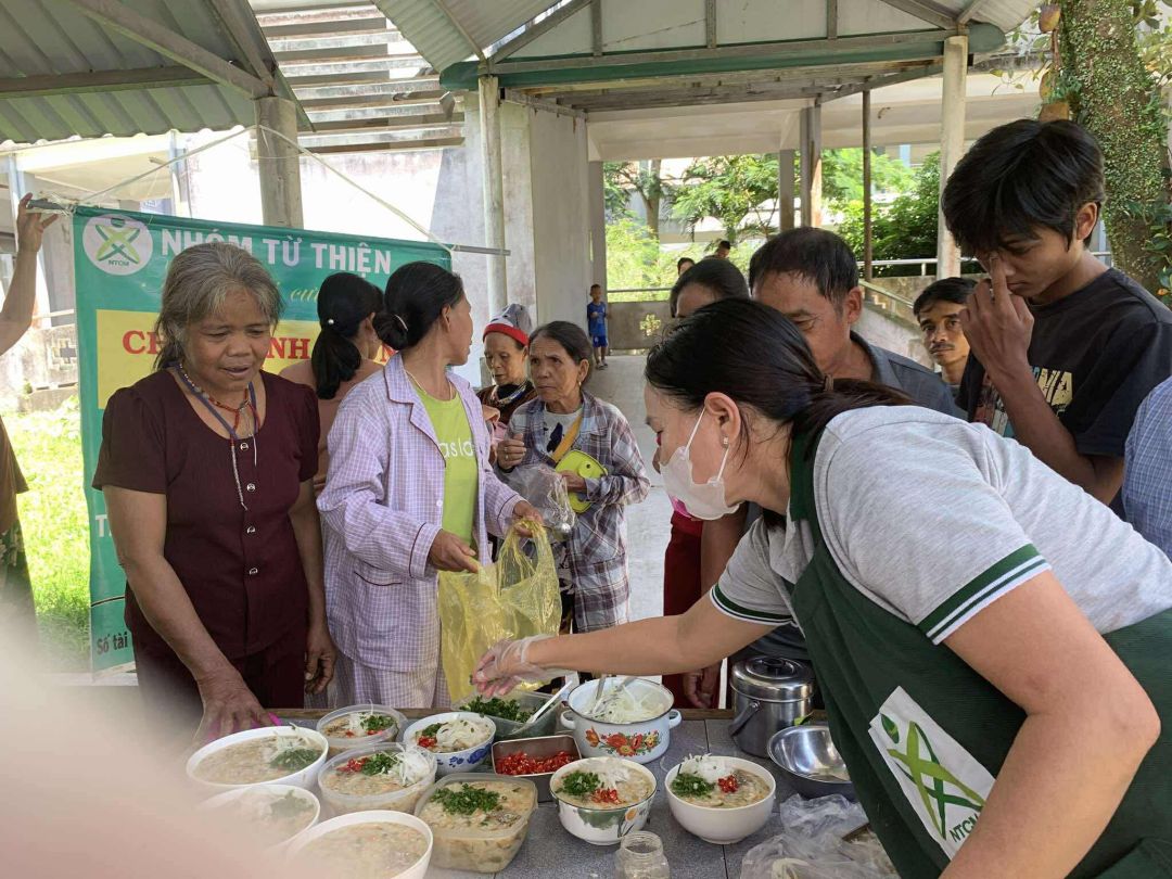Bà con vui mừng khi nhận được cháo thiện nguyện Người tôi cưu mang