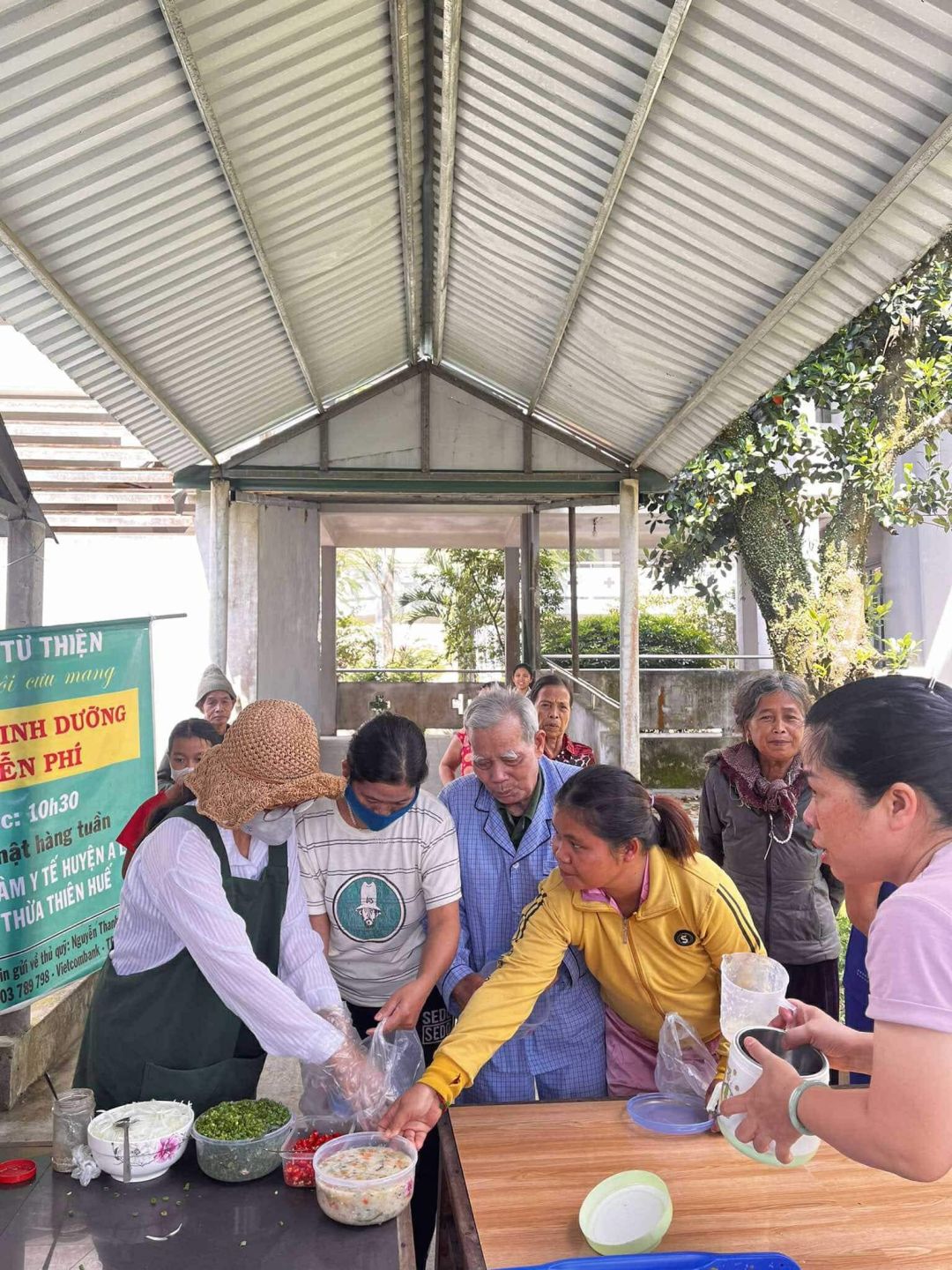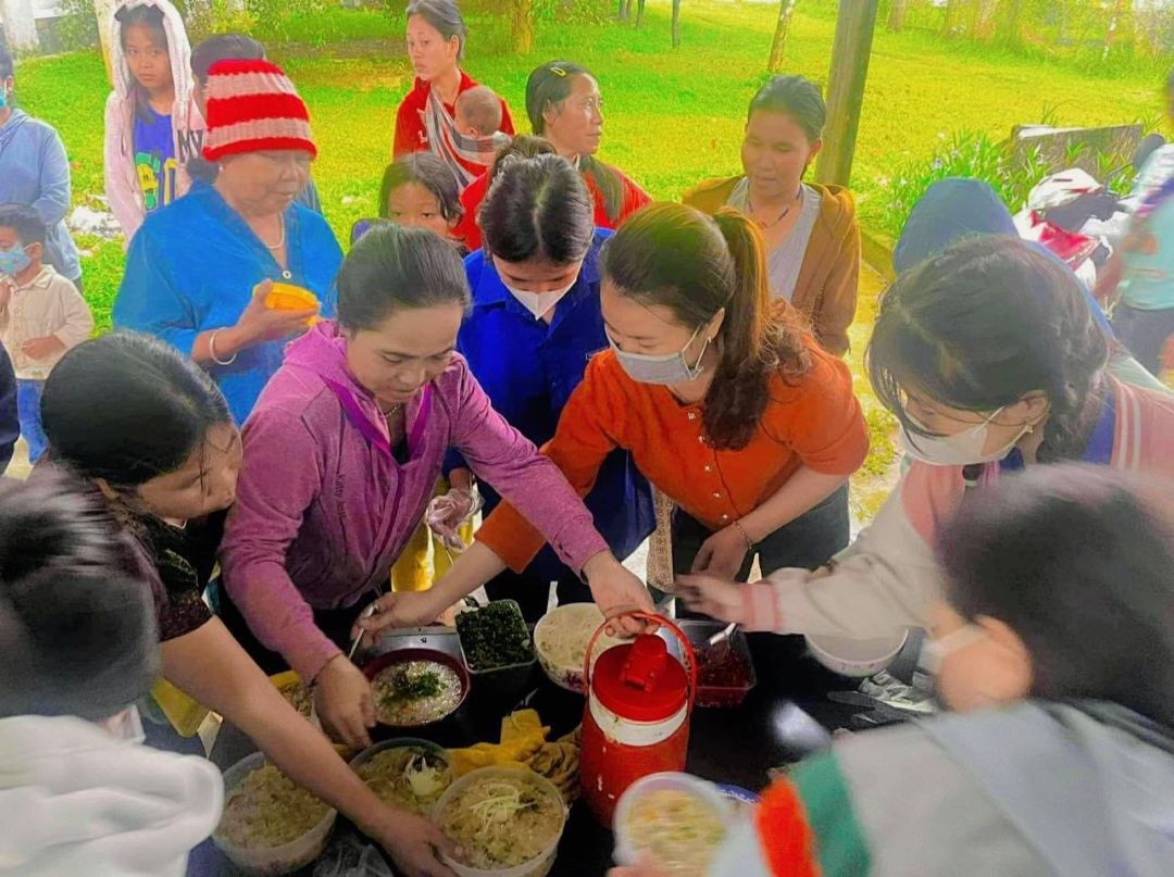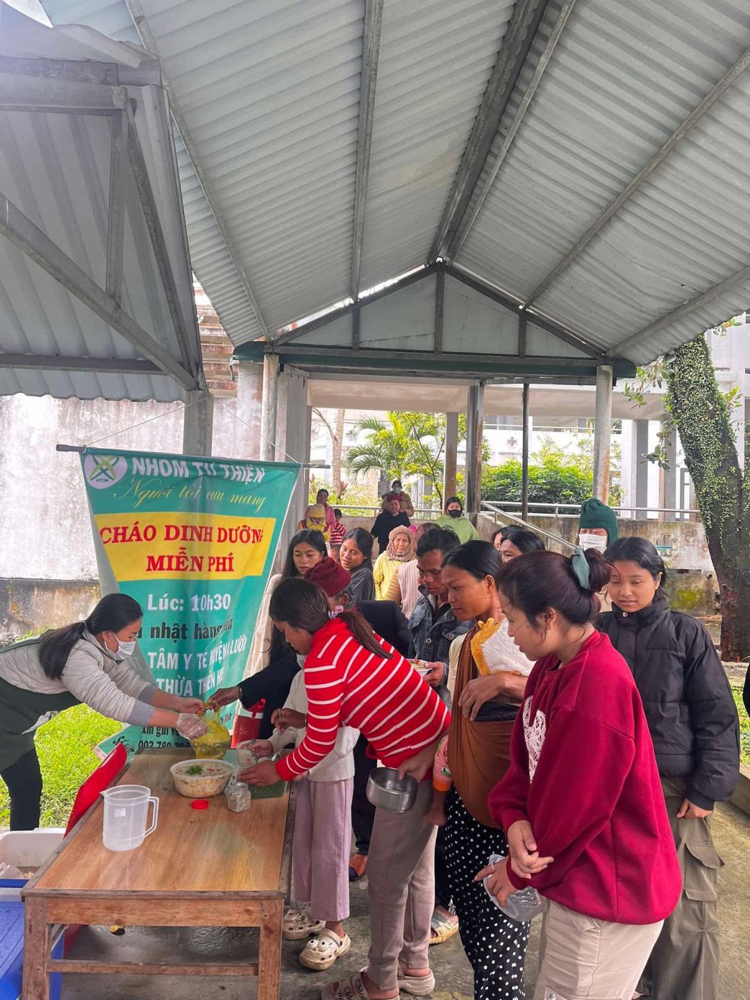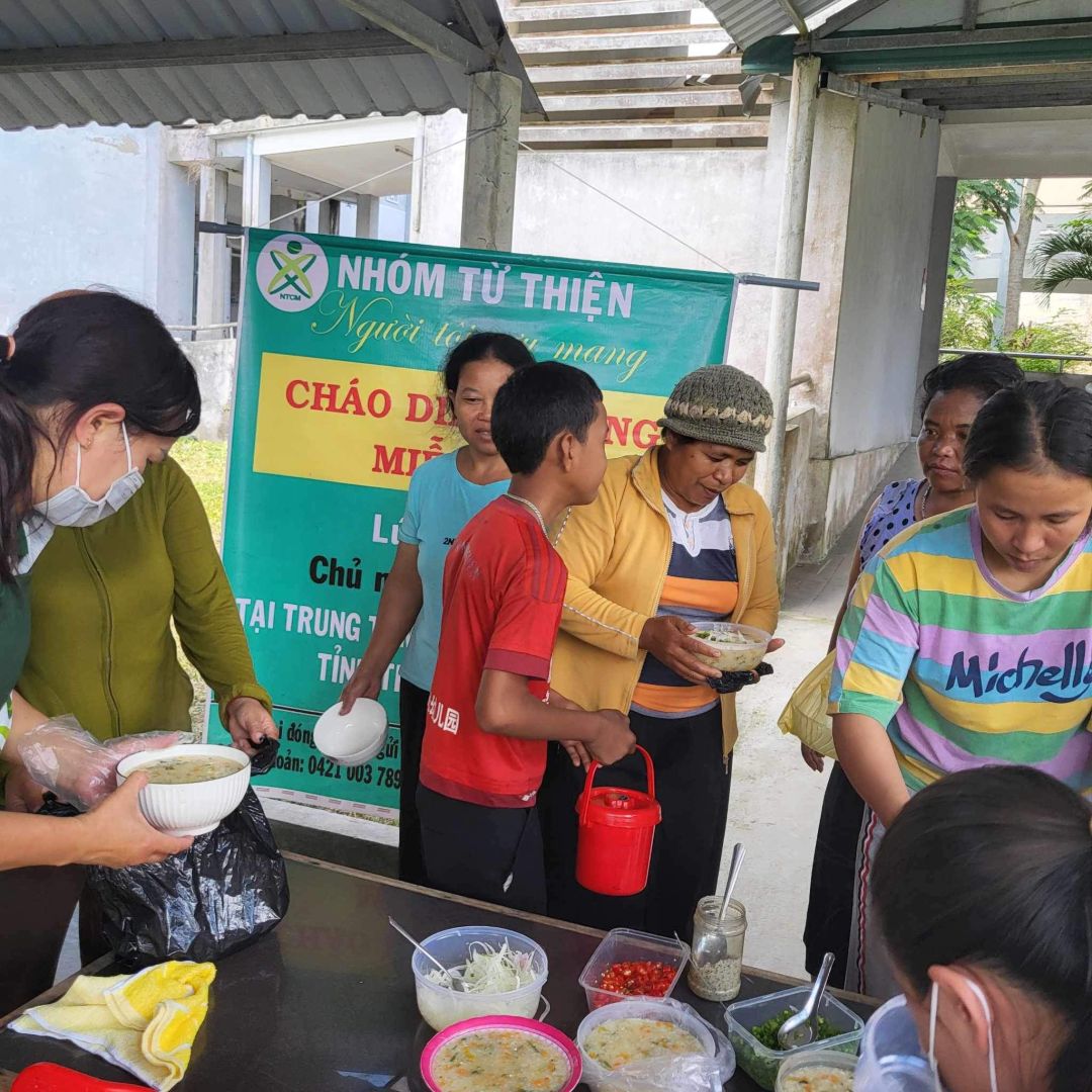 Chủ nhật mỗi tuần, cảm ơn sự hỗ trợ kinh phí của quý MTq và các chị em đã thu xếp thời gian chung tay cùng nồi cháo Người tôi cưu mang tại trung tâm y tế huyện A Lưới.