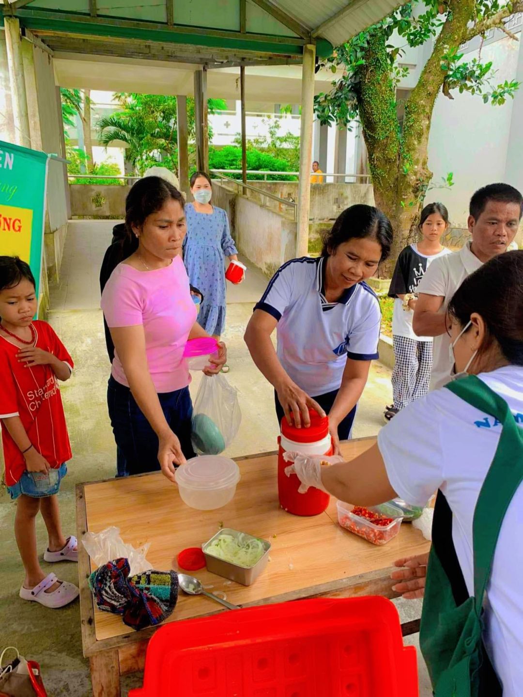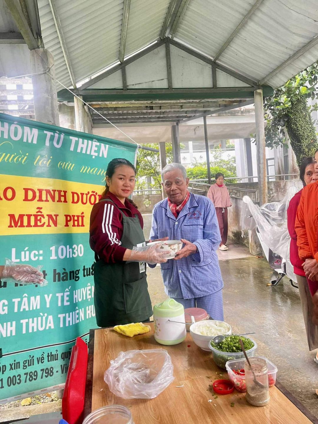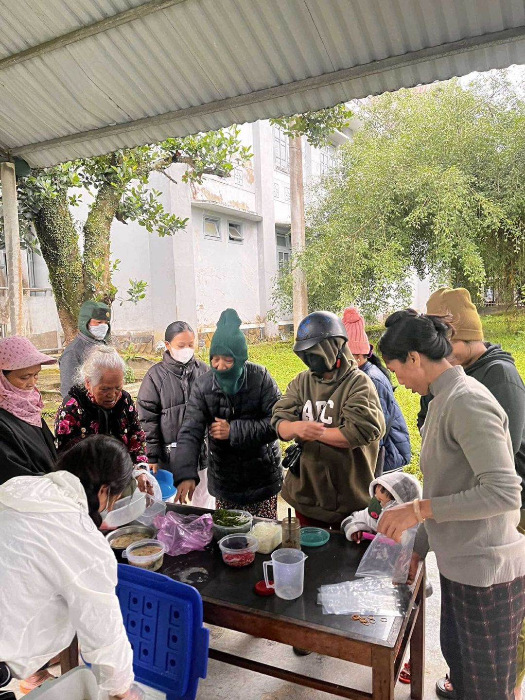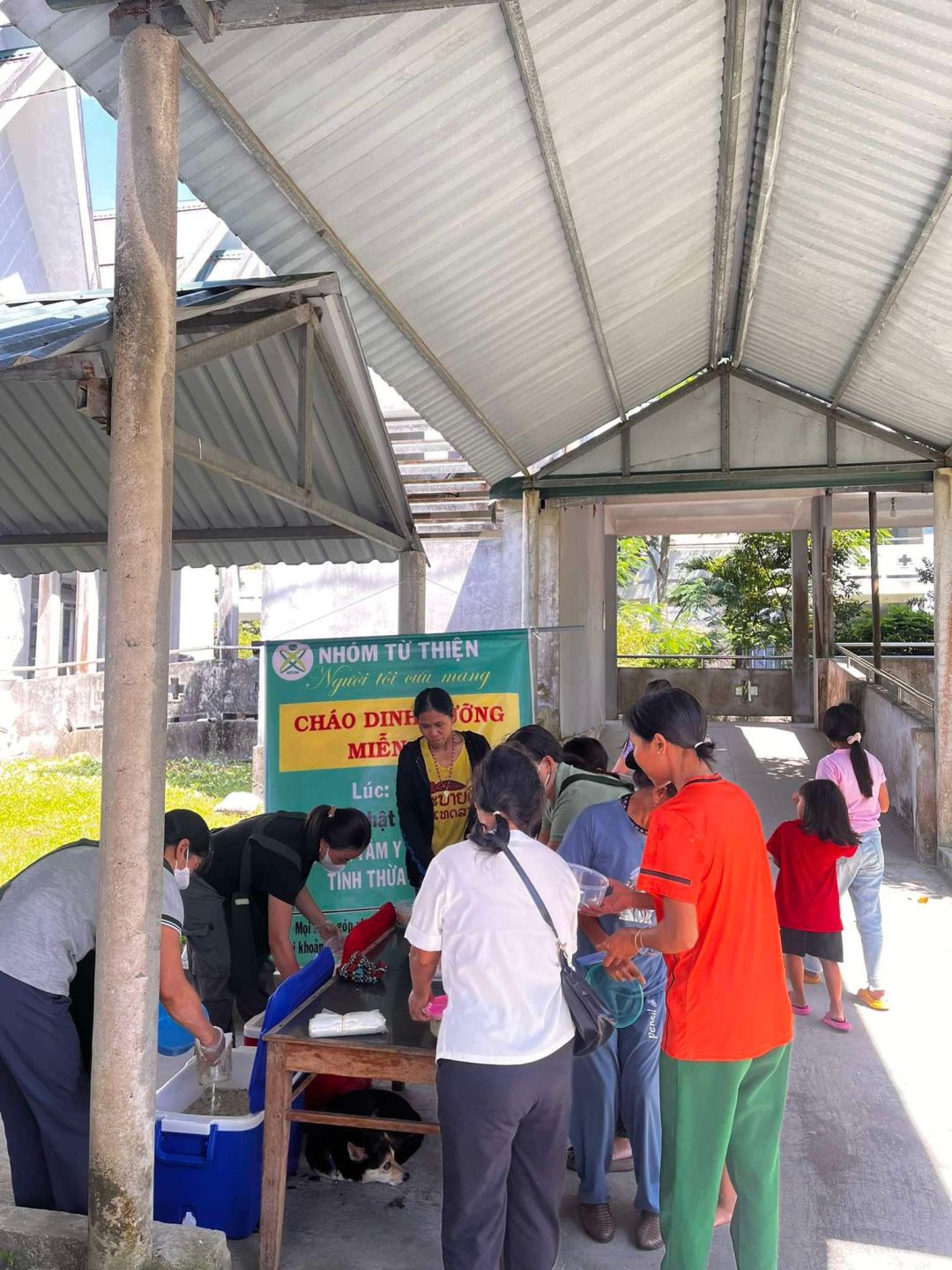 Chủ nhật mỗi tuần, cảm ơn sự hỗ trợ kinh phí của quý MTq và các chị em đã thu xếp thời gian chung tay cùng nồi cháo Người tôi cưu mang tại trung tâm y tế huyện A Lưới.