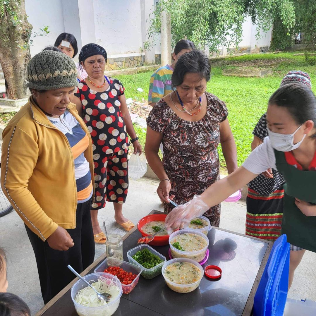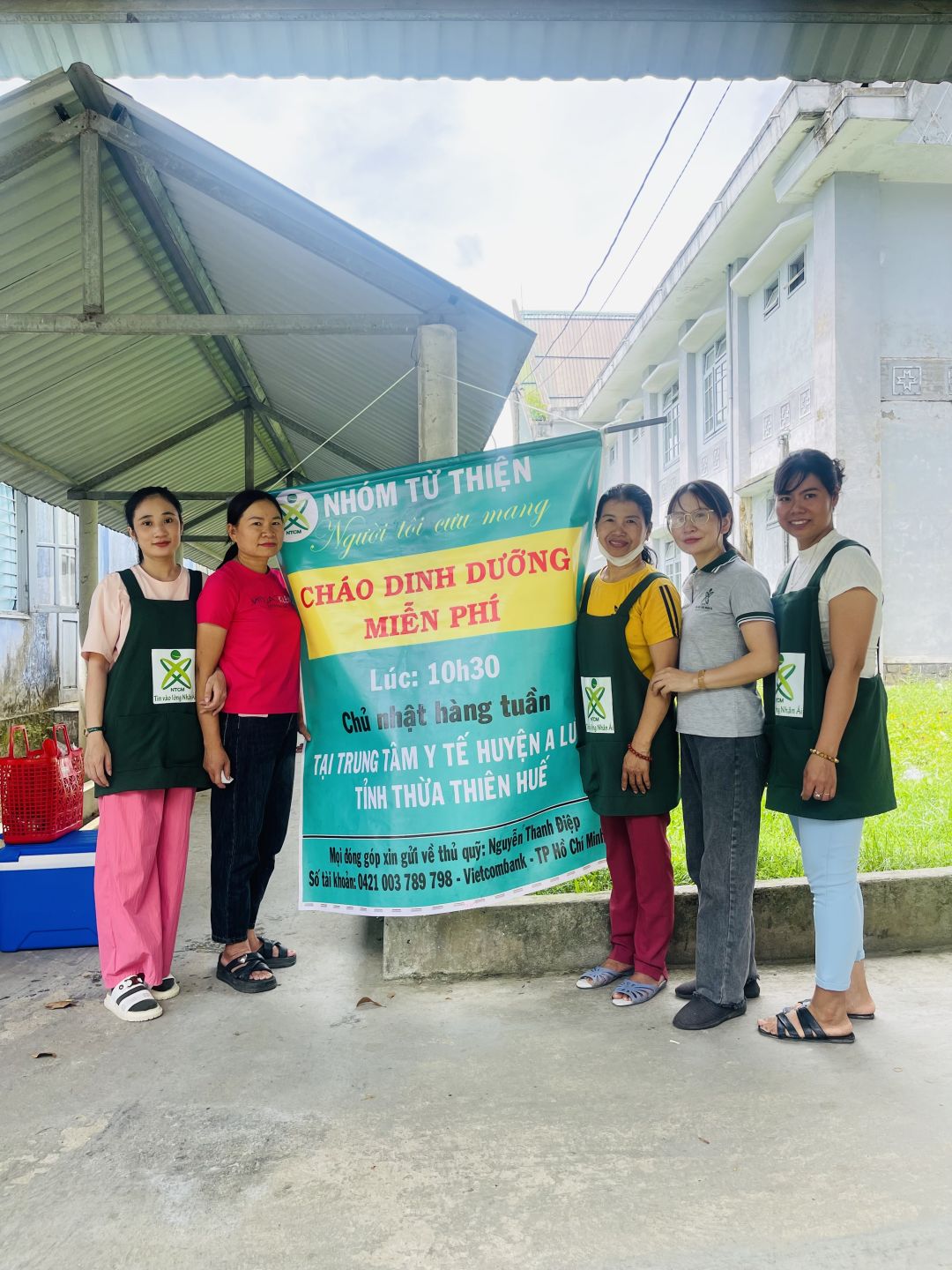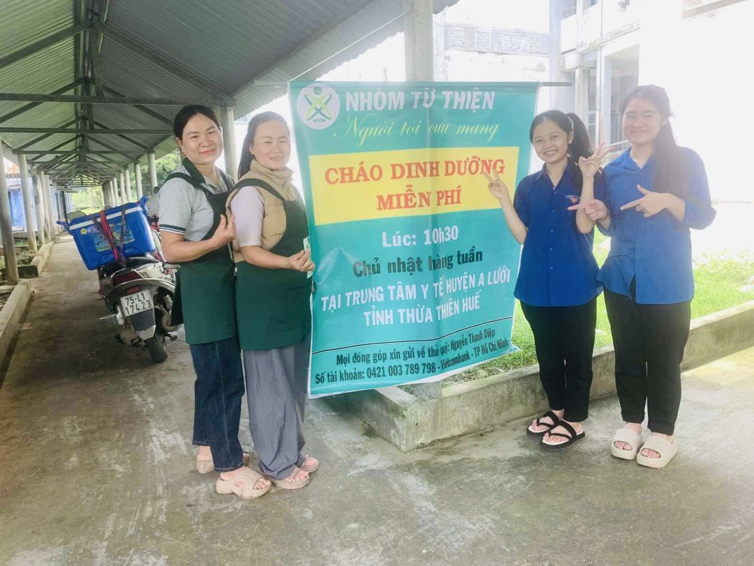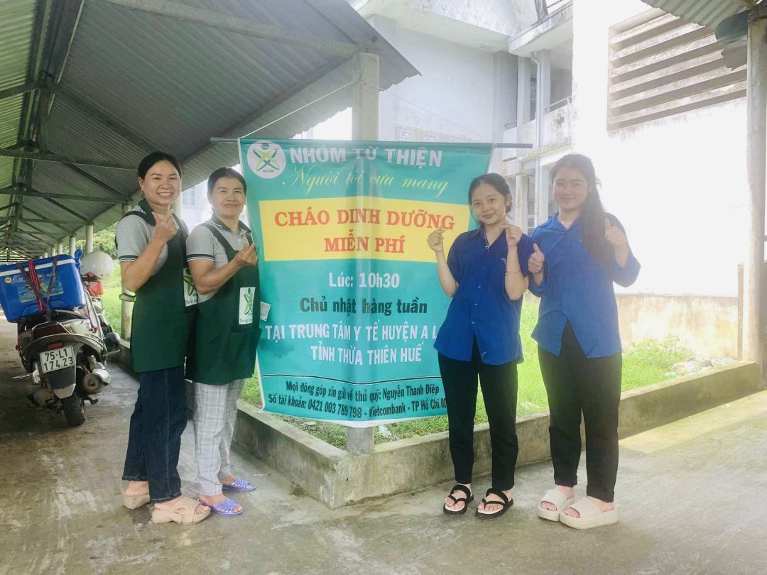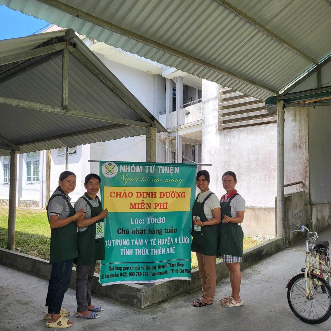 Cảm ơn sự hỗ trợ kinh phí của quý MTq và các chị em đã thu xếp thời gian chung tay cùng nồi cháo Người tôi cưu mang tại trung tâm y tế huyện A Lưới, Huế.
