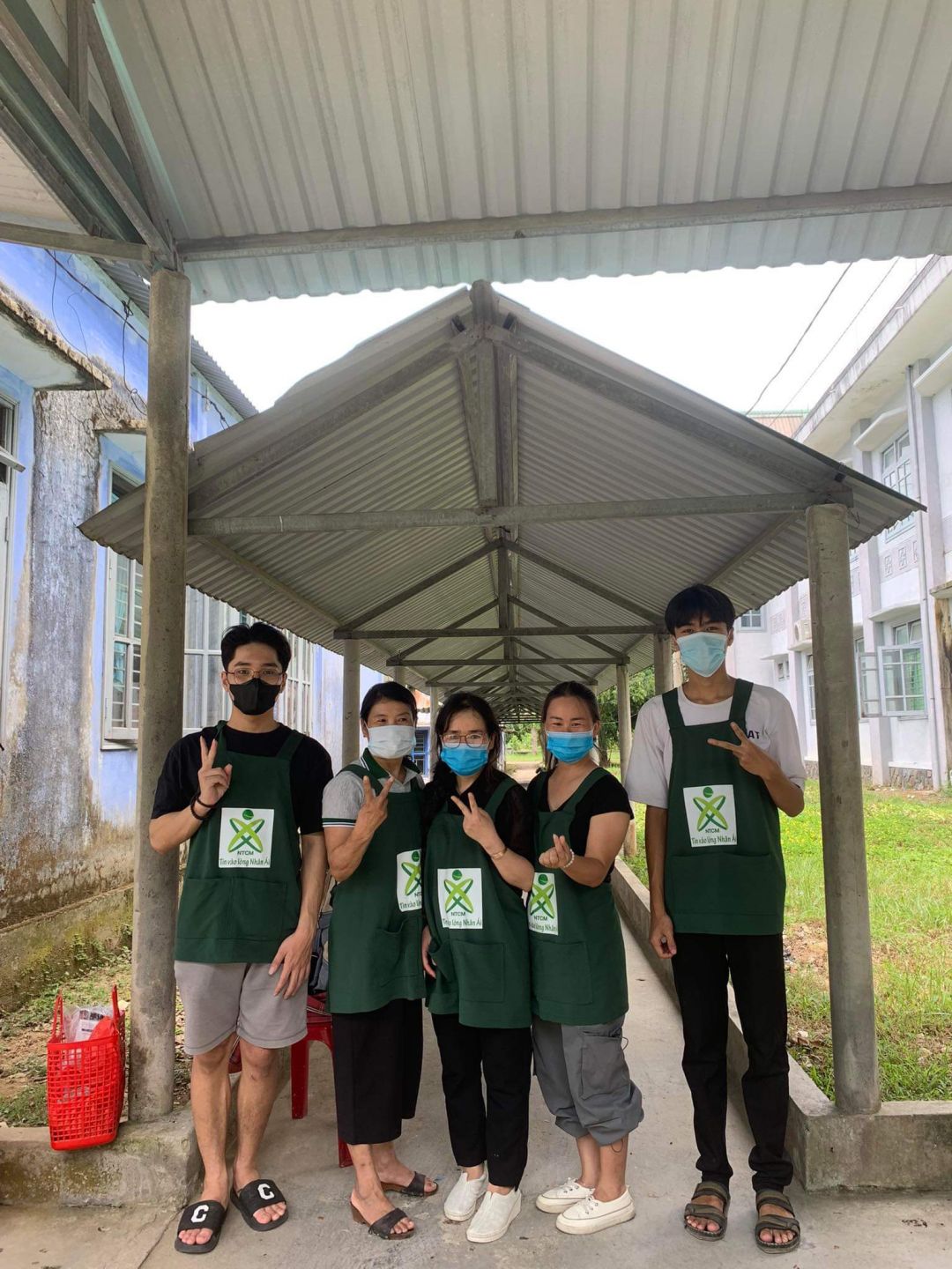 Hôm nay đội xe Nhân Ái NTCM Huế gởi tặng cháo  A Lưới 6 logo tạp dề.