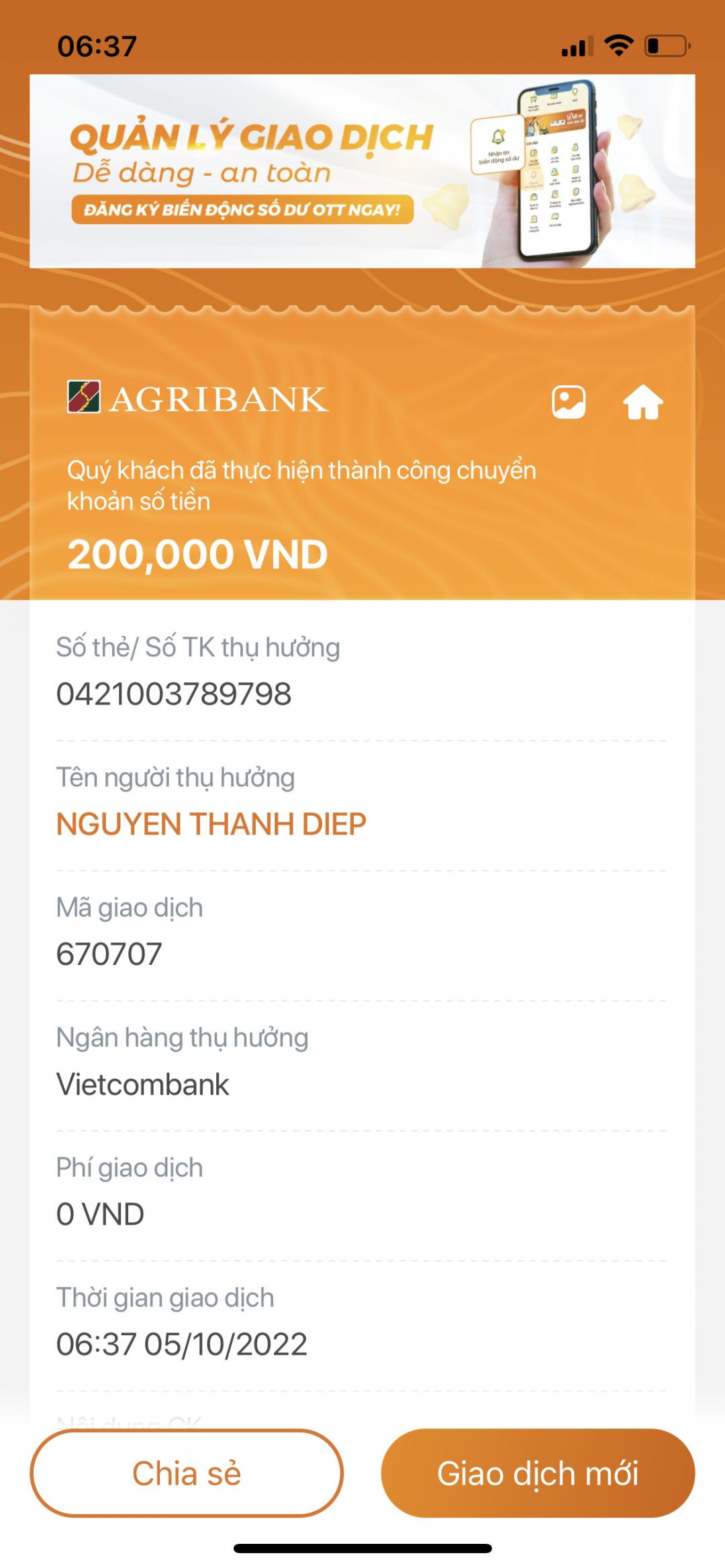Bạn em ủng hộ 200 k nhờ em ck cho chị Diệp sáng nay ạ!