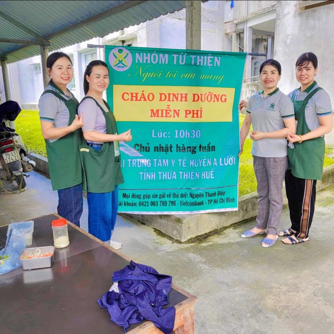 Cảm ơn sự hỗ trợ kinh phí của quý MTq và các chị em đã thu xếp thời gian chung tay cùng nồi cháo Người tôi cưu mang tại trung tâm y tế huyện A Lưới, Huế.
