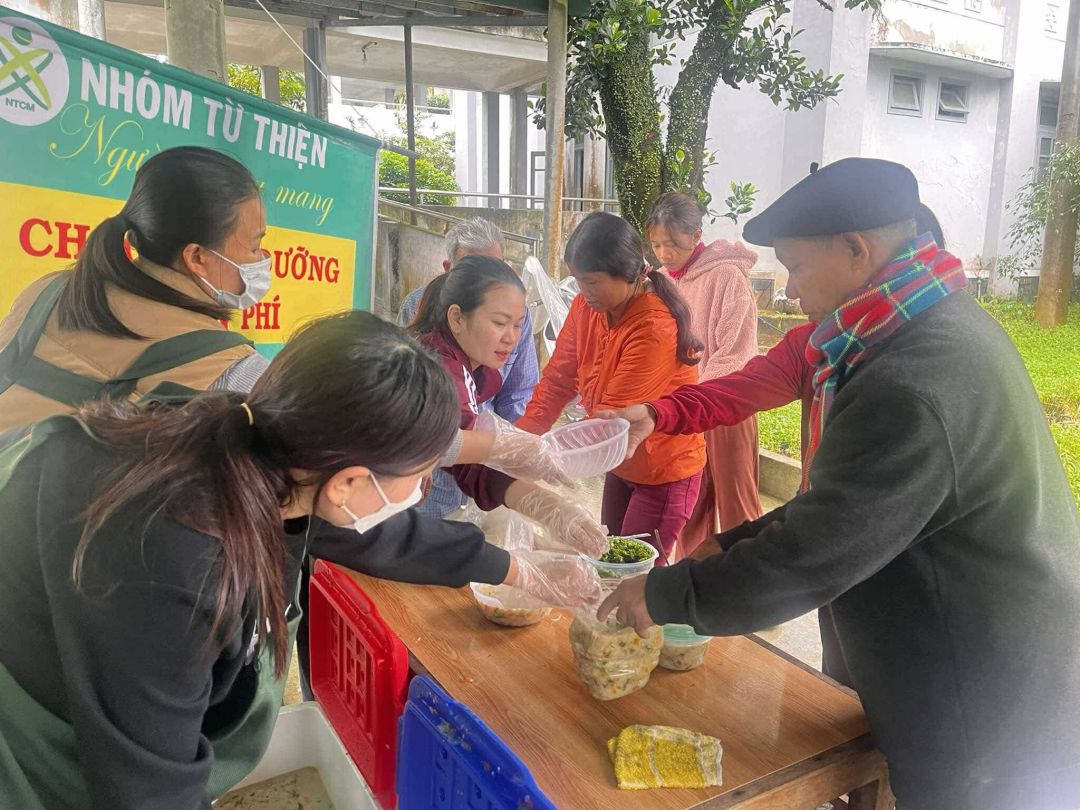 Chủ nhật mỗi tuần, cảm ơn sự hỗ trợ kinh phí của quý MTq và các chị em đã thu xếp thời gian chung tay cùng nồi cháo Người tôi cưu mang tại trung tâm y tế huyện A Lưới.