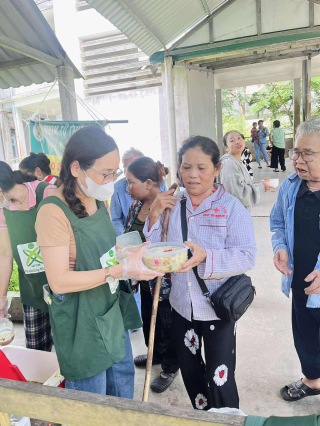 Bà con vui mừng khi nhận được cháo thiện nguyện Người tôi cưu mang