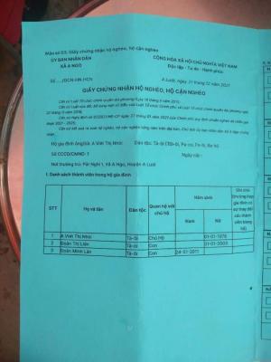 Mẹ thì không biết chữ, nói tiếng Kinh còn chưa sỏi,tình hình sức khoẻ không đảm bảo, hay ốm đau liên miên, sức đề kháng kém không làm thêm gì được, chỉ loanh quanh ở nhà làm vườn và ít ruộng, thu nhập trung bình 500 k/1 tháng. Gia đình còn gánh thêm khoản nợ 5 triệu đồng khi mua vật liệu để lợp mái nhà.