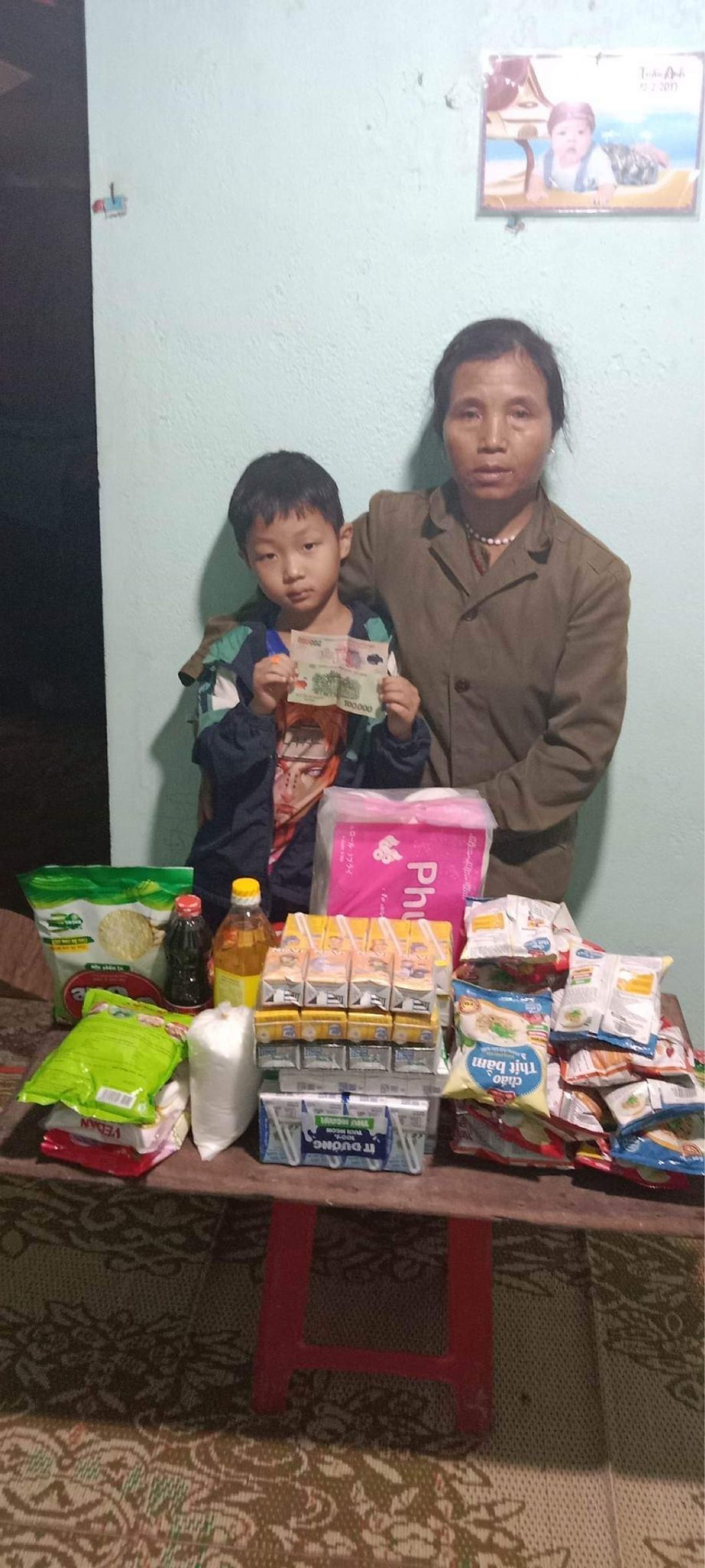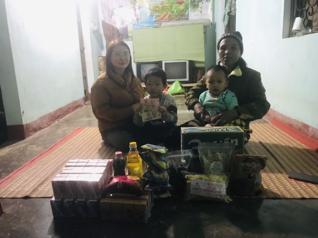 Em đã trao hỗ trợ CMTX t12. cho hai bà cháu. 300.000đ tiền sữa. 400.000 đ nhu yếu phẩm và 300.000đ tiền mặt.