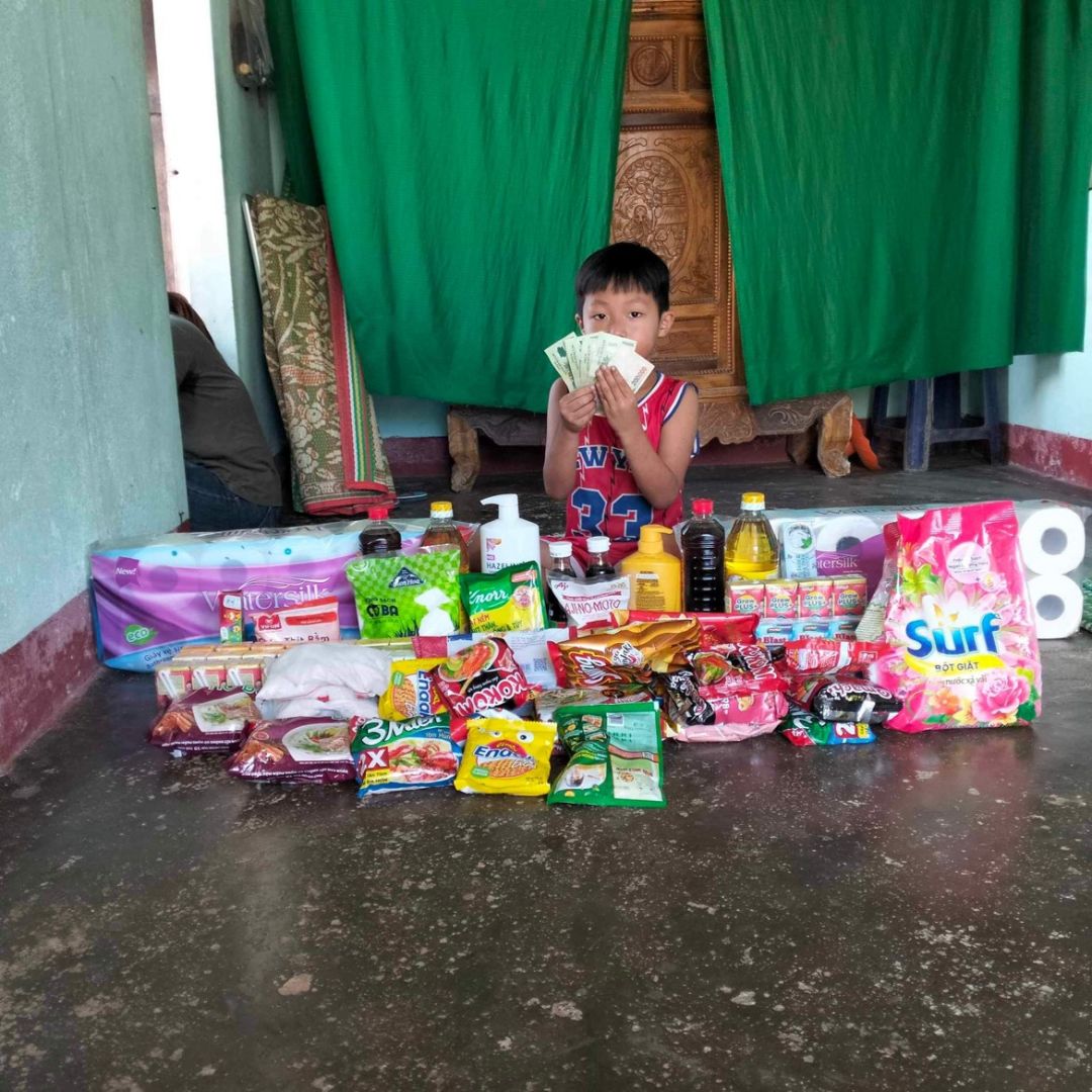Nhóm động viên và gởi món quà nhu yếu phẩm giúp gia cảnh, món quà từ thành viên @ThaiDzuy trị giá 200k.