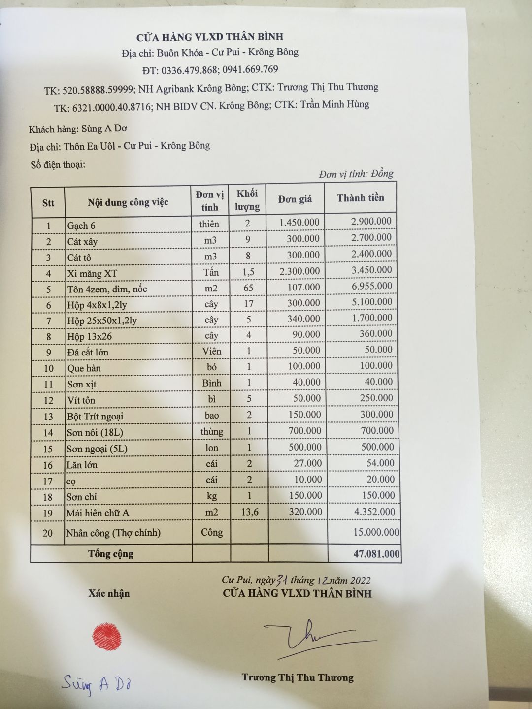 Mình xin báo cáo tổng thu chi của NNMU 42 tại xã Cư Pui ạ.
