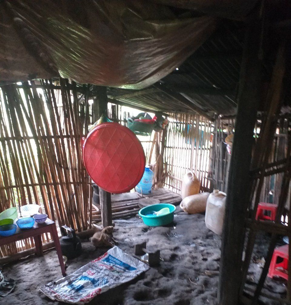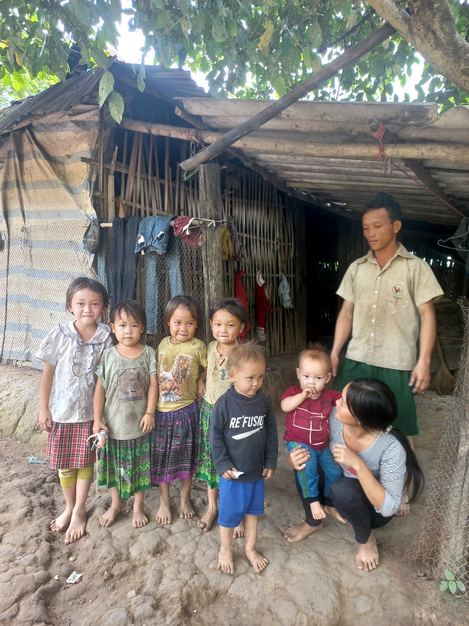 Hoàn cảnh gia đình hai vợ chồng lấy nhau cha mẹ nghèo ở xa, hai vợ chồng về đây mua được mảnh đất để làm 1 căn nhà tạm để ở đến nay đã được 8 năm, vợ chồng không có đất sản xuất, quanh năm chỉ biết đi làm thuê kiếm sống nuôi con, hồi nhỏ cả 2 đều không được học hành thiếu hiểu biết dẫn đến sinh đông con, hiện tại có 6 đứa con nhỏ, nhà ở tạm bợ dột nát rất thương cho 6 cháu nhỏ phải chịu đói rét, ướt lạnh khi trời mưa không có chỗ nằm. Nhưng điều kiện gia đình không bao giờ có thể sửa lại nhà được.