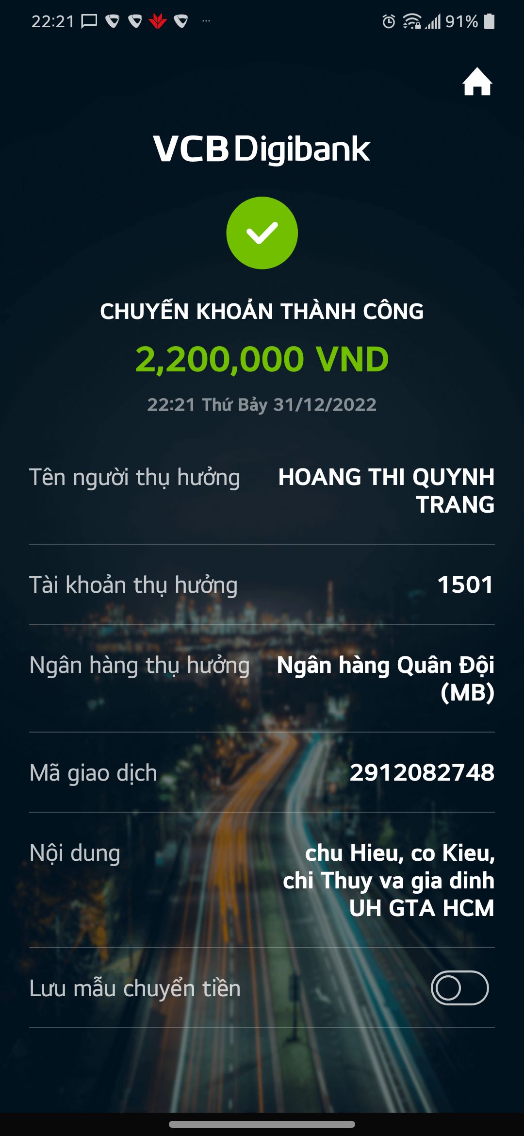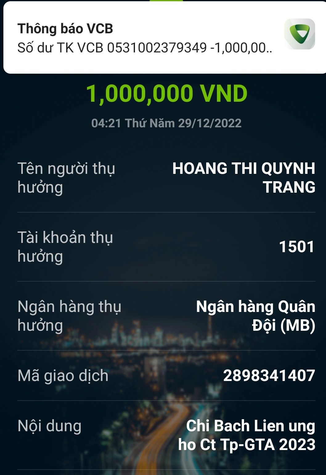 Letuantu đã nhận, sẽ chuyển vào tài khoản thủ quỹ sau ạ.