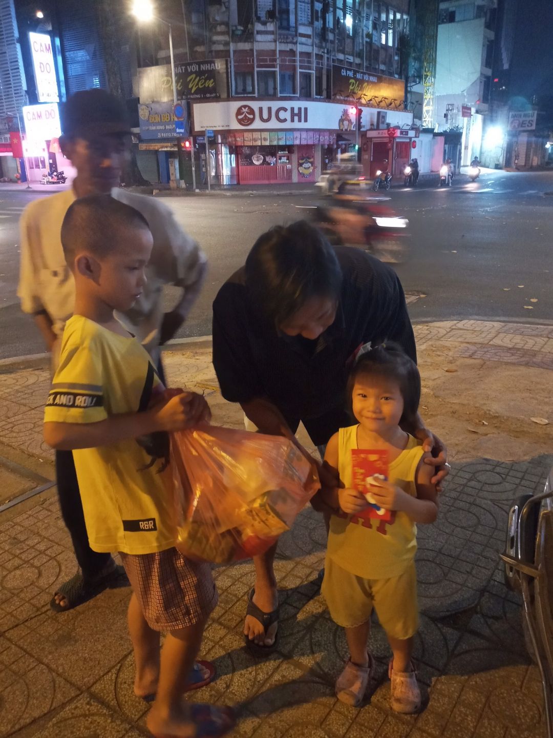 Gửi Cả Nhà Hình ảnh Con Gái Mai Trâm đi trao quà đến tay bà con vô gia cư Đêm 30 tết