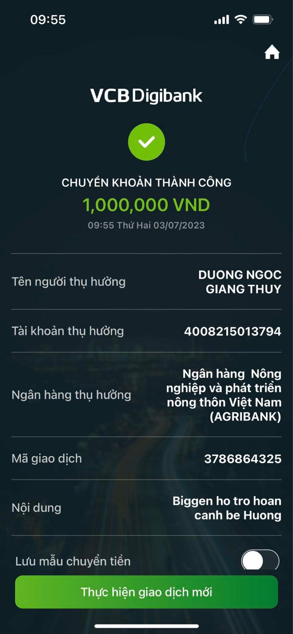 MTQ đã chuyển tiền CMTX tháng 7 qua Wendy_Dương nhờ Wendy_Dương chuyển cho gia đình bé Hương nhé !