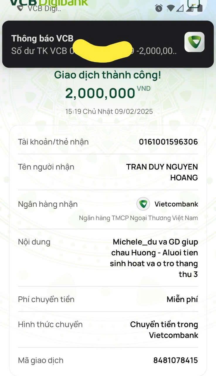 Michele_du và Gia đình đã chuyển tiền trọ và tiền sinh hoạt tháng thứ 2 tới Thầy Hoàng rồi.