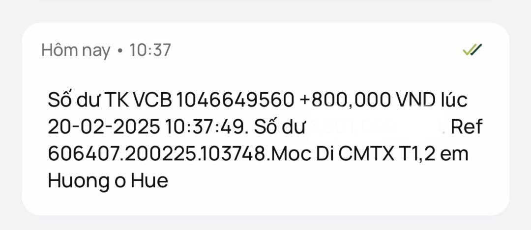 Michele_du và Gia đình đã chuyển tiền trọ và sinh hoạt phí tháng thứ 3 tới cháu Hương rồi các bạn nhé.