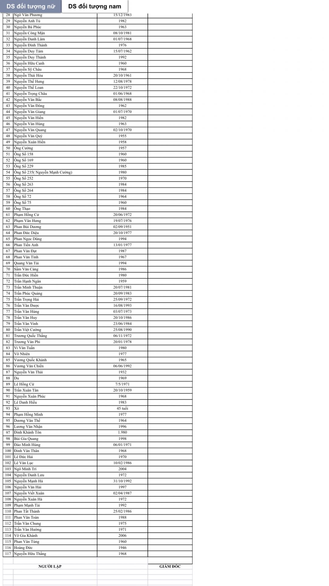 E xin được cập Nhật danh sách các đối tượng đang ở tại Trung tâm ạ.