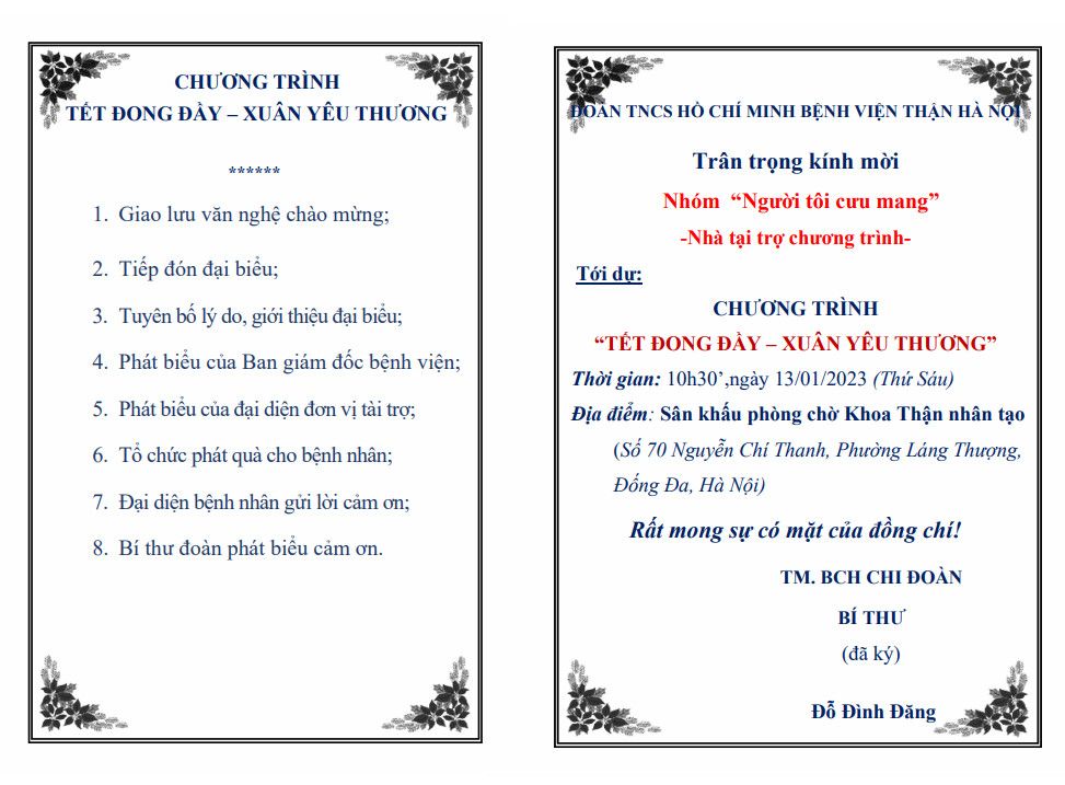 Tiền dư của Chương trình : 18.957. Ko 000 đ .  Chúng tôi xin phép những người ủng hộ được chuyển cho các hoạt động hỗ trợ của bệnh nhân viện thận sau Tết