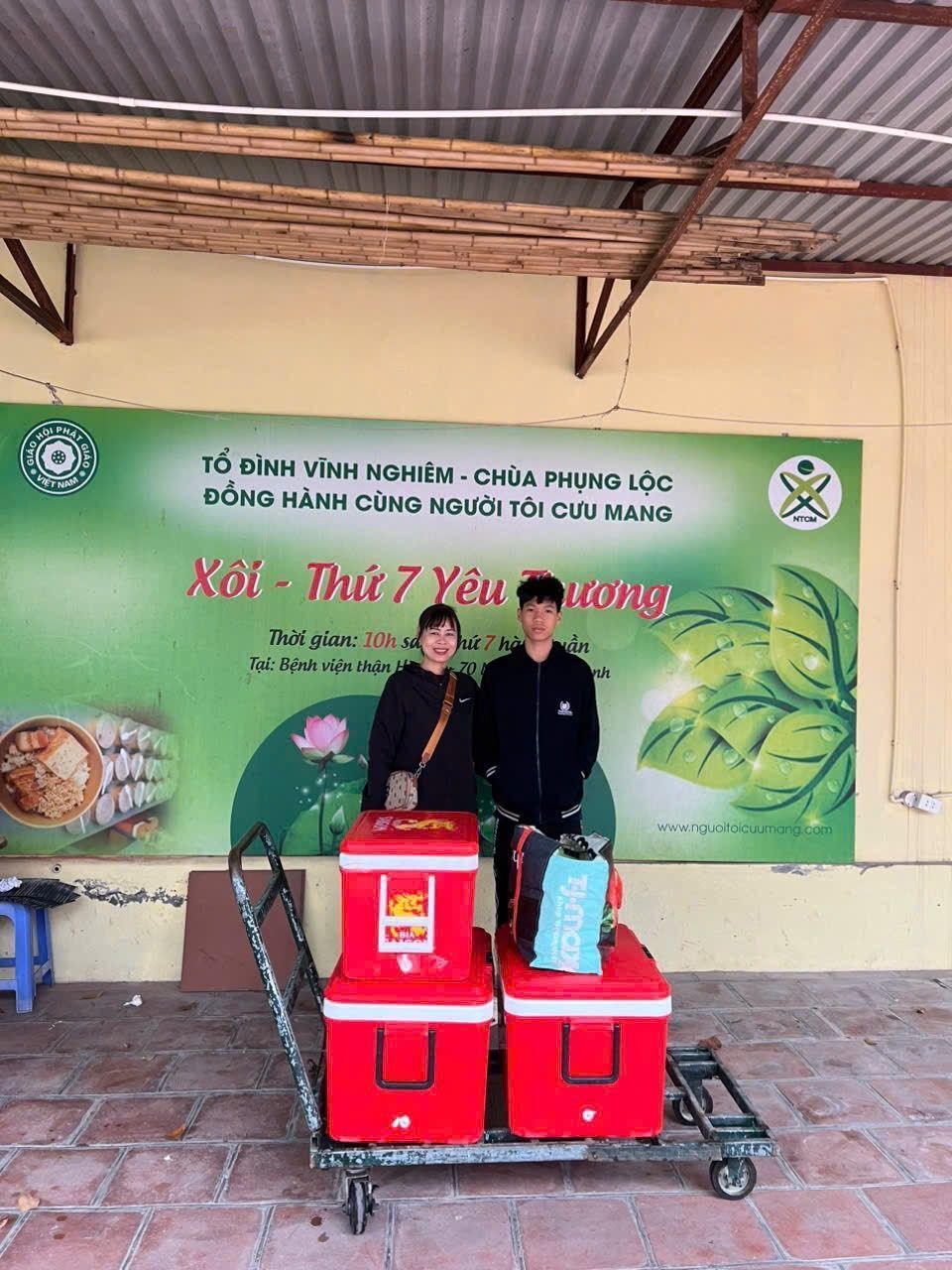 Tuần này NTCM nhận được sự ủng hộ 27kg gạo + đỗ xanh của Chùa Phụng Lộc (Thày Huy và Đạo Tràng), nước cốt thịt kho của Chị Đinh Hương - Bếp Lành, giấy trắng gói xôi của Chii Hương, lá chuối và lá dong của Bác Di.