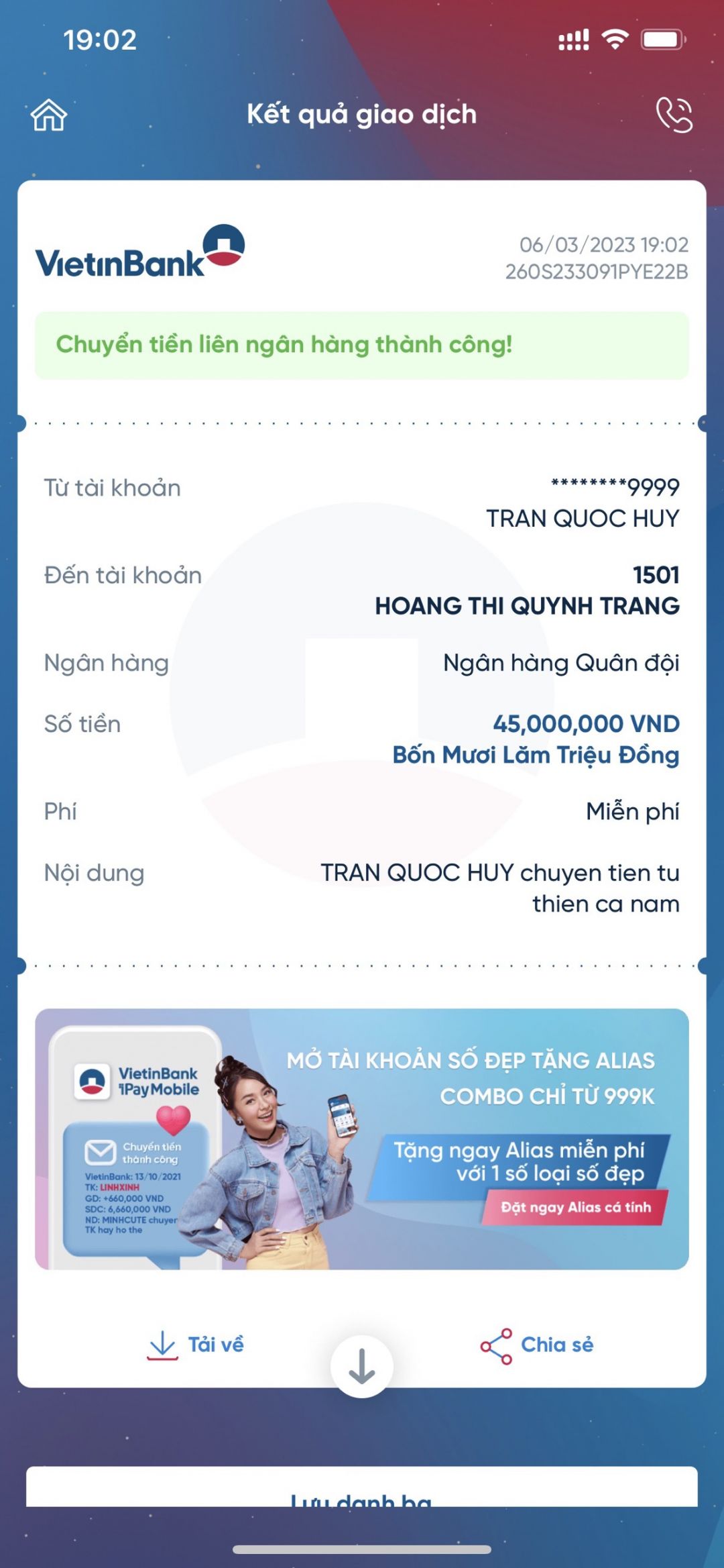 Hoan hỉ lắm cả nhà ạ. Hôm nay ngày Rằm tháng 2 , Đại đức Thích Thanh Huy đã chuyển khoản Ủng hộ cho hoạt động của Người tôi cưu mang: 1. Thứ