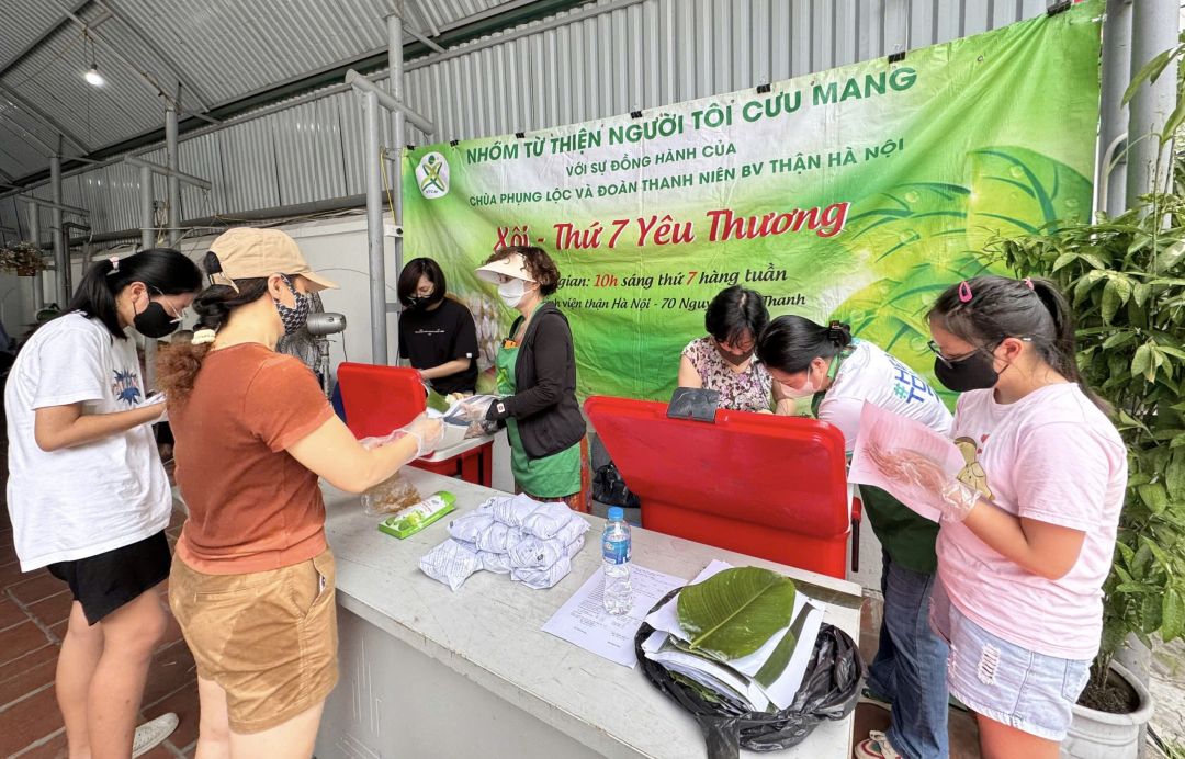 Ngày 3/5/2025, dù là ngày lễ nhưng NTCM vẫn liên tục hoạt động Xôi Ngon Thứ 7 Yêu Thương với 200 suất xôi gửi tới BN BV Thận HN.