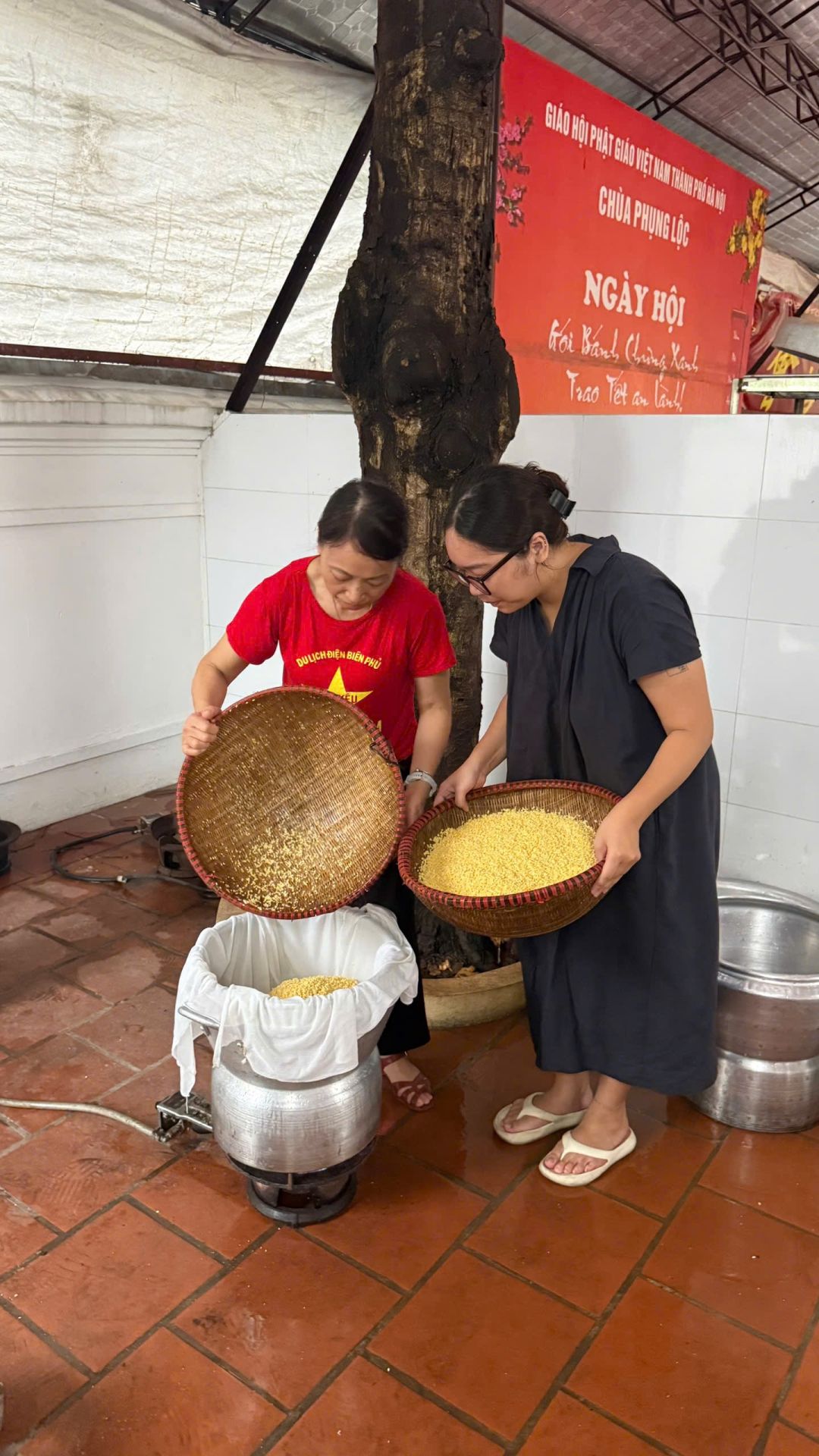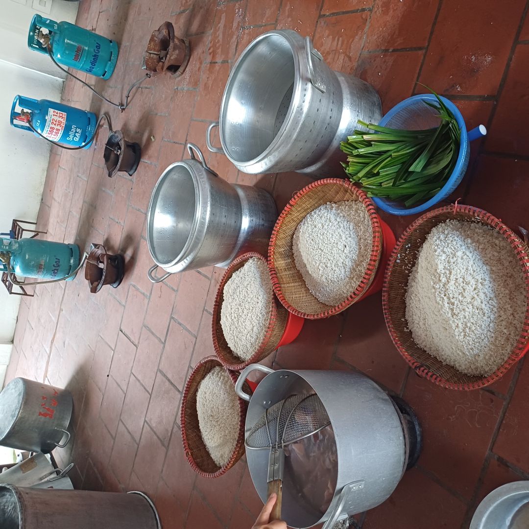 Tuần này NTCM nhận được sự ủng hộ 27kg gạo + đỗ xanh của Chùa Phụng Lộc (Thày Huy và Đạo Tràng), nước cốt thịt kho của Chị Đinh Hương - Bếp Lành, giấy trắng gói xôi của Chii Hương, lá chuối và lá dong của Bác Di.