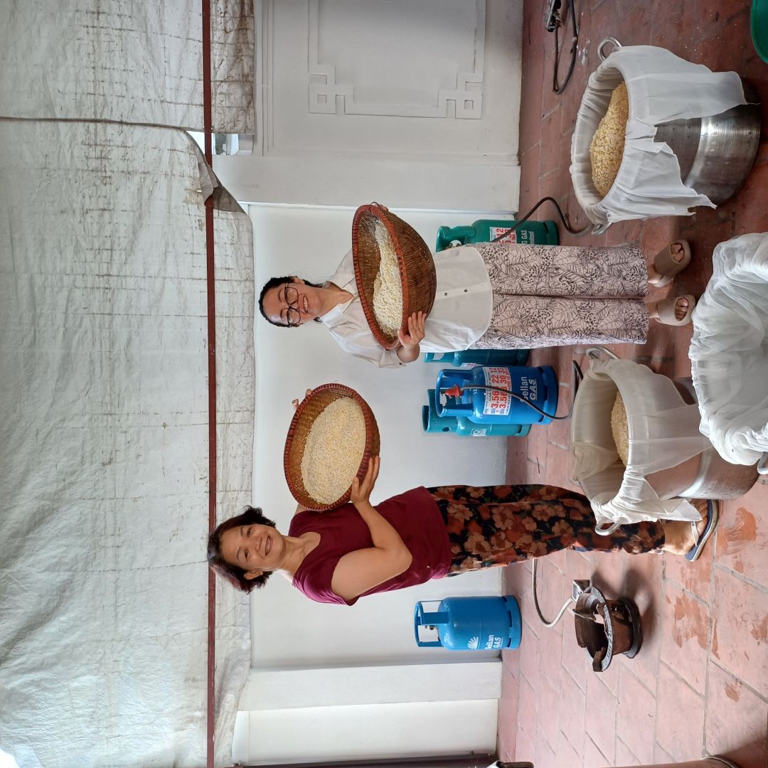 Tuần này NTCM nhận được sự ủng hộ 27kg gạo + đỗ xanh của Chùa Phụng Lộc (Thày Huy và Đạo Tràng), nước cốt thịt kho của Chị Đinh Hương - Bếp Lành, giấy trắng gói xôi của Chii Hương, lá chuối và lá dong của Bác Di.