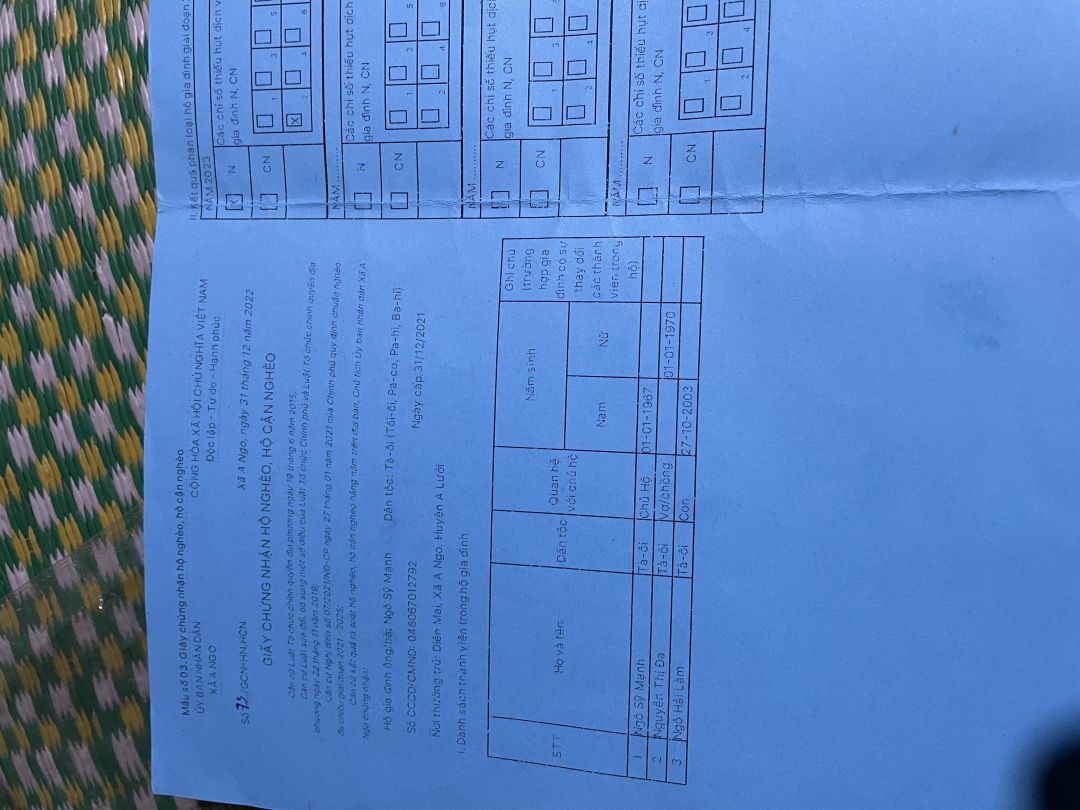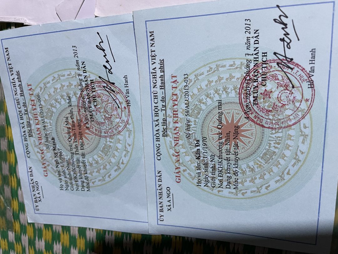 Hàng tháng ông Ngô sỹ Mạnh được trợ cấp khuyết tật 720.000₫ , bà Nguyễn Thị Đa được trợ cấp khuyết tật 540.000₫