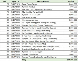Nhờ các bạn tiếp tục cập nhật sự ủng hộ để kịp thời điều chuyển kinh phí thực hiện chương trình dùm nhé.
