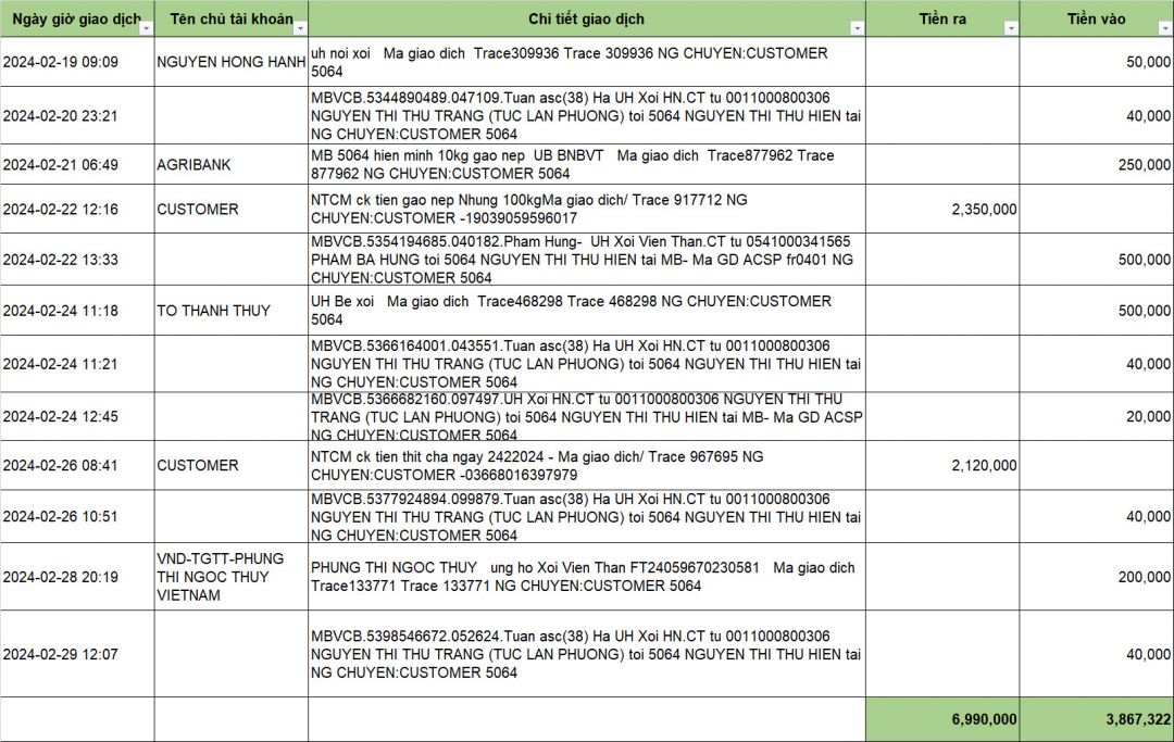 TK này là tài khoản mở , ACE có thể kiểm tra các khoản thu chi của nhóm khi tải áp thiện nguyện trong khoảng thời gian 3 tháng.