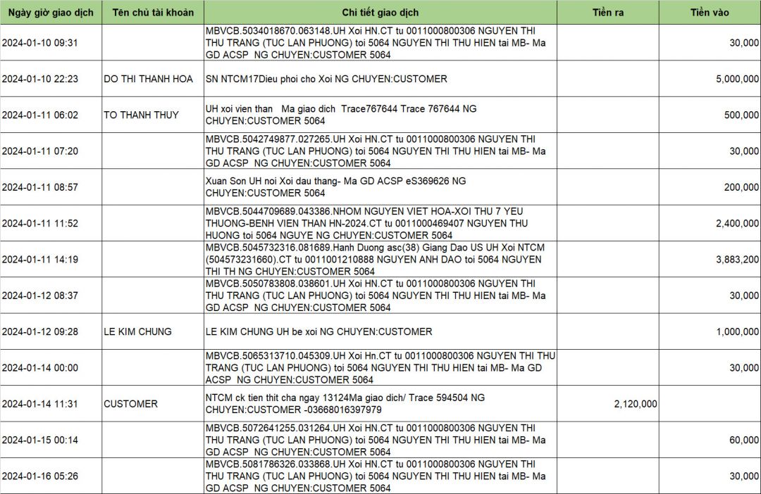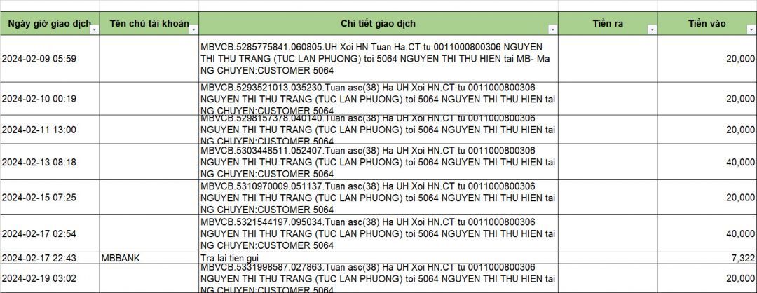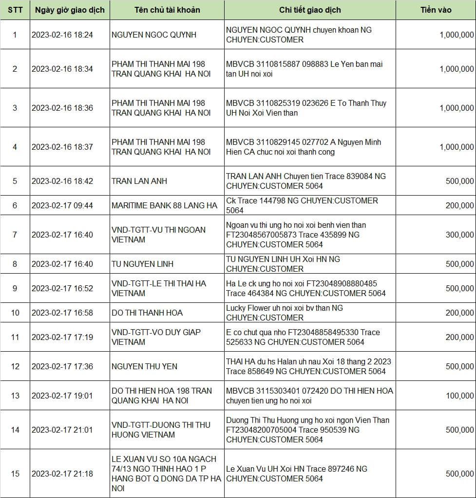 Tài khoản 5064 -MB Bank - Nguyễn Thi Thu Hiền vẫn tiếp tục nhận yêu thương của cả nhà.