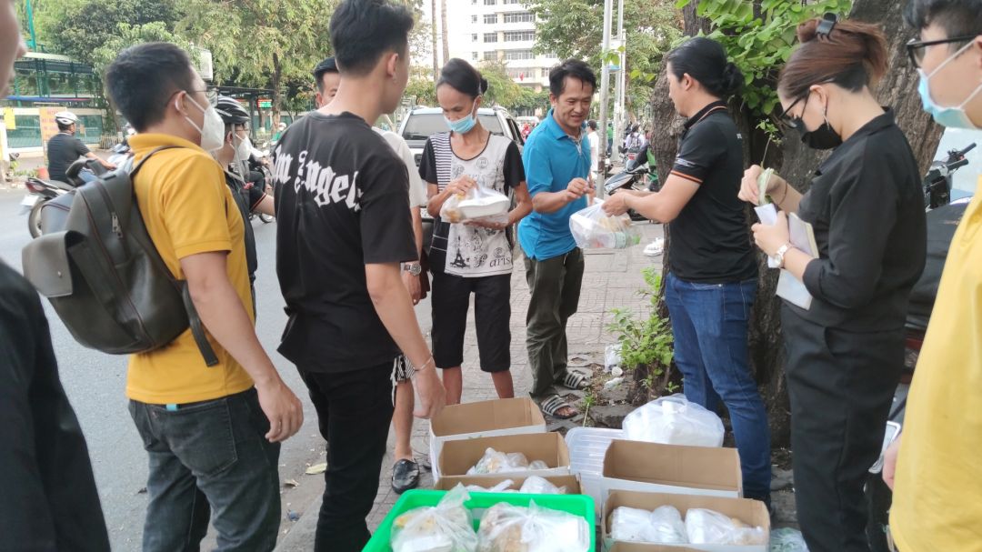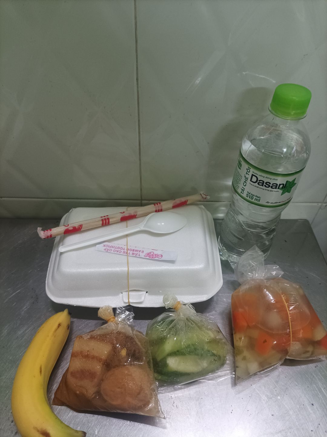 1. Cơm làm và đóng họp lúc khoảng 15h chiều, và di chuyển đến trước bệnh viện phát vào khoảng 16h30, để bà con ở đó nhận và ăn vào buổi chiều, họ để đến tối 7 8h ăn cũng không sao, vì cơm và đồ ăn được để riêng với nhau.