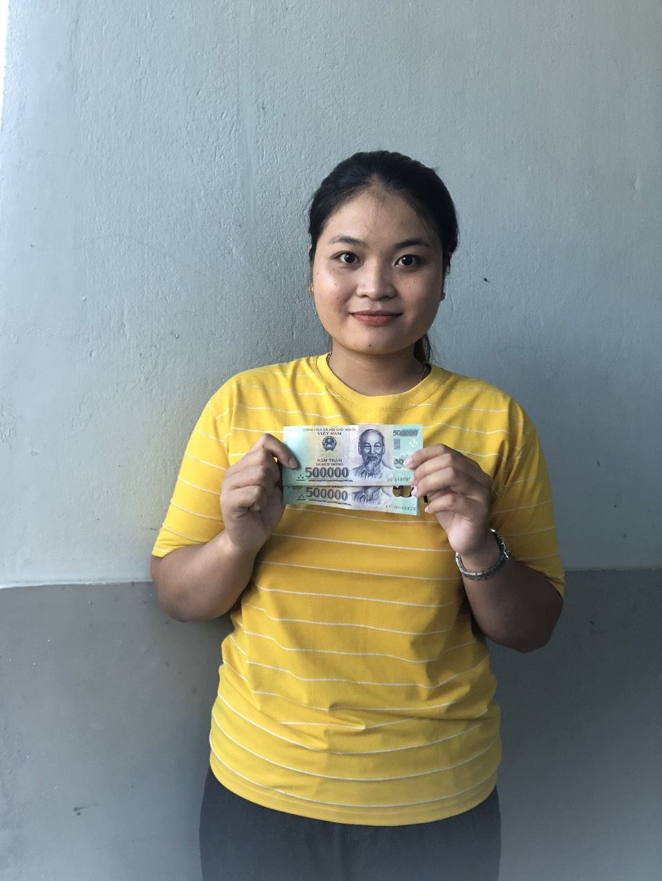 Em đã trao số tiền 500.000 đ tới mẹ em Hồ Thị Nhu
