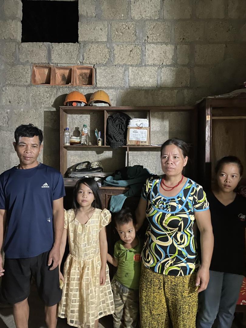 Gia đình anh thuộc diện nghèo bền vững. cách đây  gần 10 năm gia đình anh được nhà nước hỗ trợ một ngôi nhà trị giá 50 triệu, cứ nghỉ là sẽ làm thêm vay chút ít của ngân hàng chính sách để làm cho ngôi nhà được tươm tất nhưng không may trong khi làm thuê anh bị tai nạn lao động mất sức, không còn khả năng làm thuê nhà thì chưa xong  chỉ lợp tạm chỗ ngủ còn bếp củi che bạt tạm bợ nợ ngân hàng thì tới hạn gia đình không đủ khả năng trả nợ và thuốc thang.