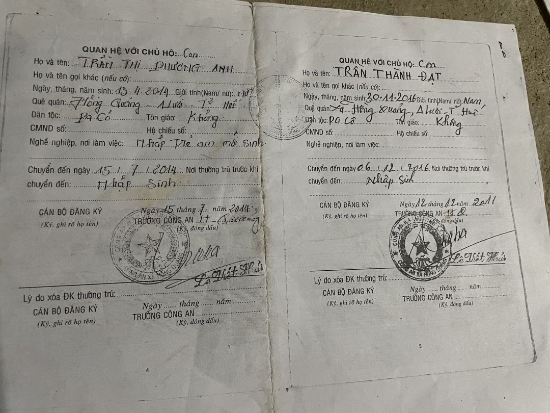Con Trần Thị Phương Anh sinh năm 2014 học sinh. Con Trần Thành Đạt sinh năm 2016 học sinh. Hiện ở