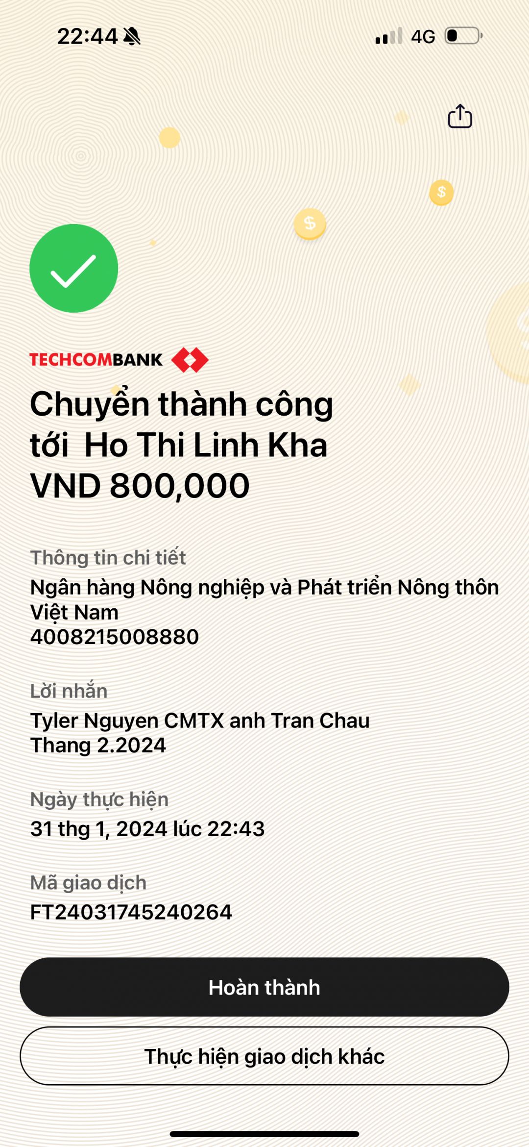 Tyler Nguyen đã thực hiện việc chuyển CMTX tháng 2.2024.