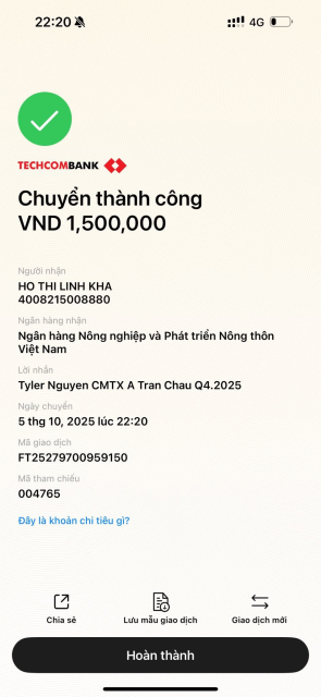 Anh Tyler Nguyen tiếp tục giúp đỡ anh Châu. Số tiền CMTX Q3/2025 đã được chuyển khoản.