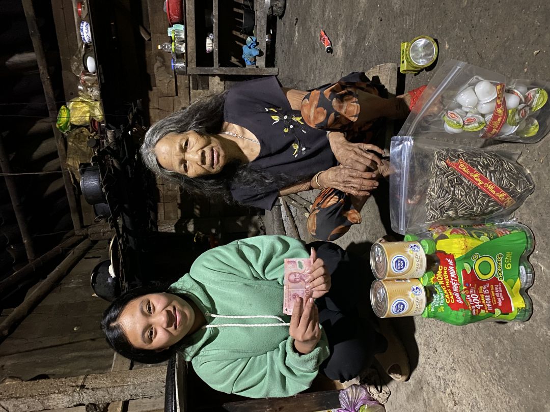 Biết ơn ngôi nhà NTCM đã đem đến cuộc sống bà cháu nhà bà Hoa ạ, bà Hoa chồng mất sớm nuôi 4 người con nhà nghèo khổ các con học không đến nơi học hết cấp 2 các con bỏ học đi làm thuê đứa con gái đầu đi làm thuê bị họ lừa sinh ra 3 đứa con đều không có bố đến một tháng tuổi lại về cho mẹ nuôi nay bà vừa nuôi con vừa nuôi cháu thêm mẹ già ốm đau….Từ ngày ngôi nhà NTCM già ddinh bà đỡ rất nhiều, bà biết ơn và trân quý những tấm lòng yêu thương gia đình bà trong thời gian qua. Hôm nay em thay mặt quý Mtq trao nhu yếu phẩm tháng 9 năm 2024. Trên đường Về em gặp bà Hoa đi cùi sắn chở thuê về. Nhu yếu phẩm em mua gồm