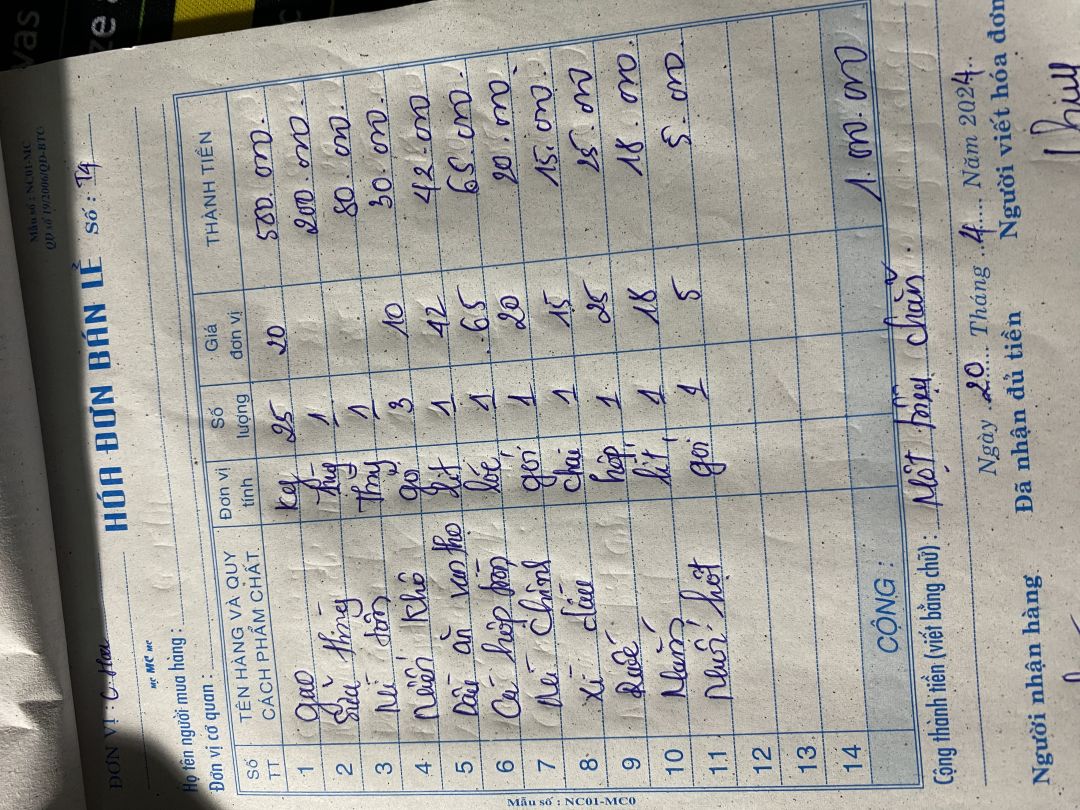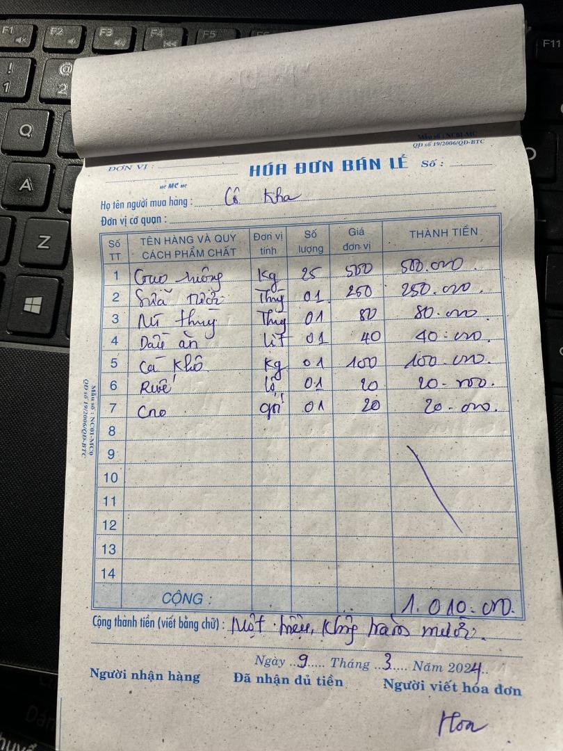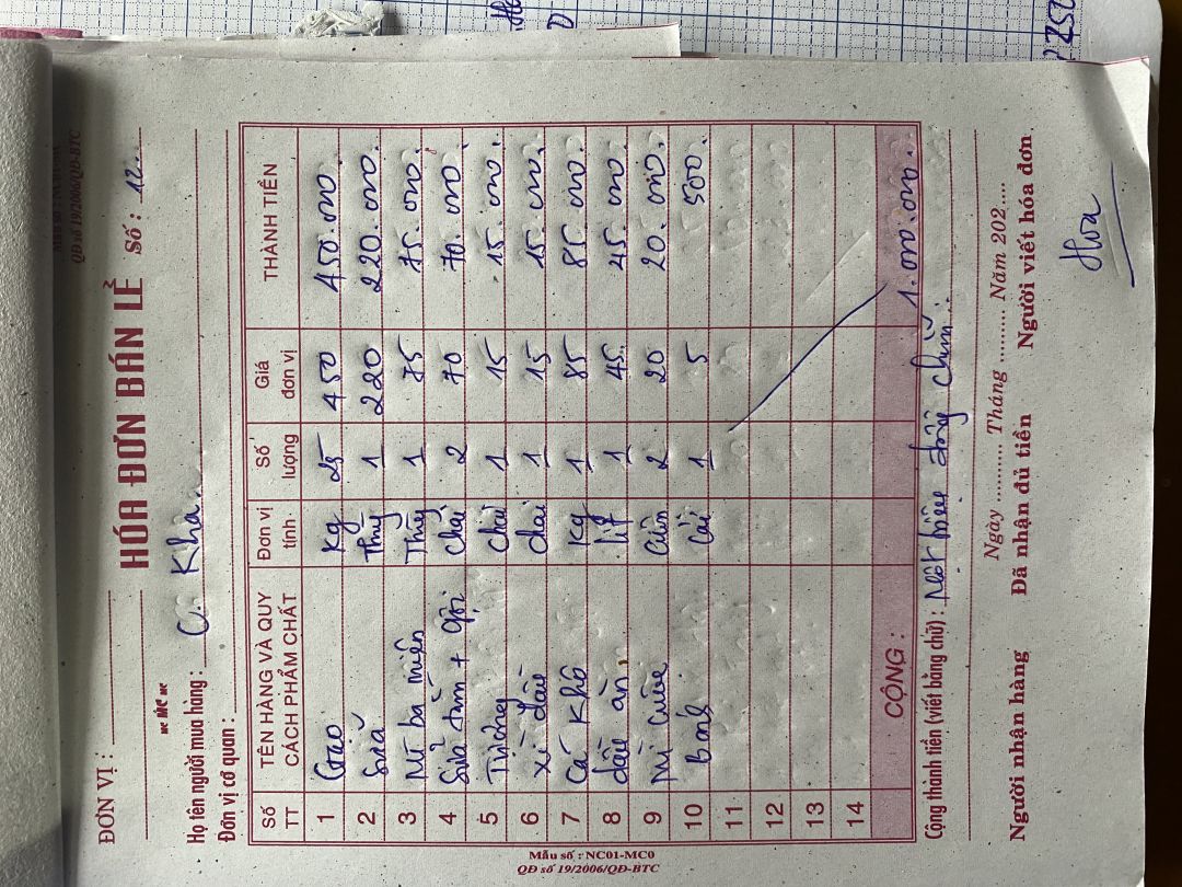 Nhu yếu phẩm tháng 6 trị giá 500.000đ