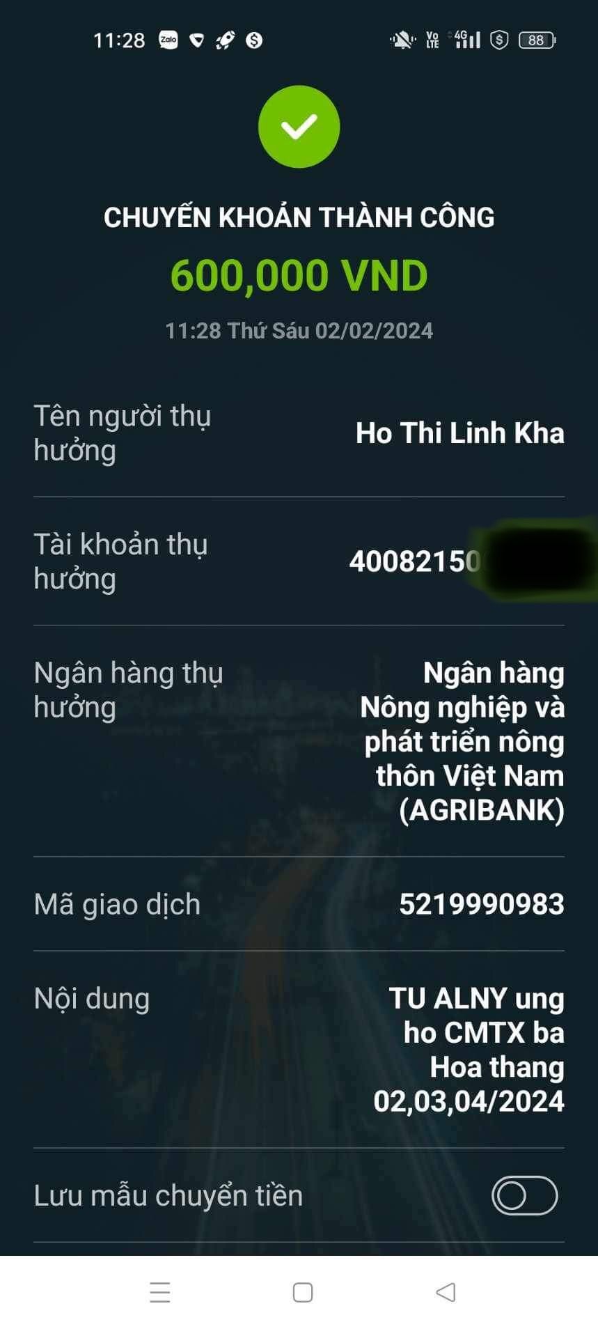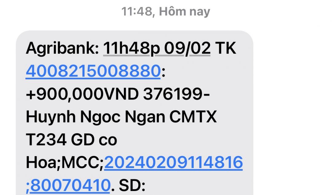 Dạ em mới nhận 900.000đ của anh chị Huỳnh Ngoc Ngan hỗ trợ tháng 2,3,4 năm 2024 biết ơn anh chị nhiều, năm mới chúc gia đình anh chị gặp nhiều may mắn và thành công ạ. Sau 12h em sẽ đi trao tiền mặt cho bà mua bánh kẹo và áo quần cho các cháu ạ