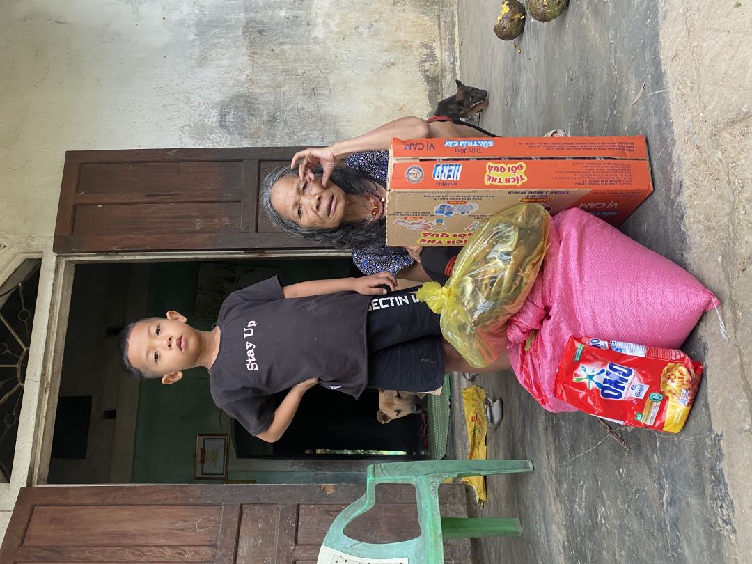 Trao quà thường xuyên của mạnh thường quân giúp đỡ gia đình bà Hoa nuôi các cháu ngoại không có cha. Gia đình thật sự rất biết ơn ngôi nhà NTCM đã giúp đỡ gia đình trong thời gian qua