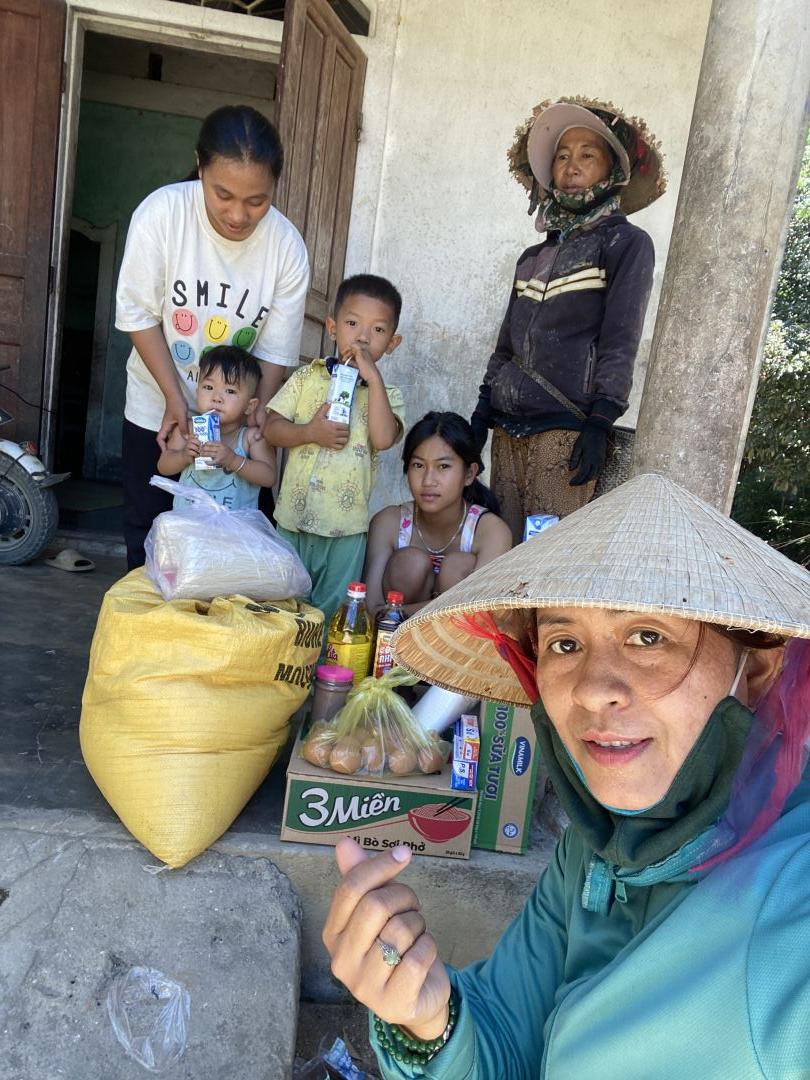 Em Thay mặt quý MTQ em đại diện trao quà tháng 8 cho chị Hoa và các cháu biết ơn ngôi nhà NTCM đã giúp đỡ hỗ trợ trong mấy tháng qua