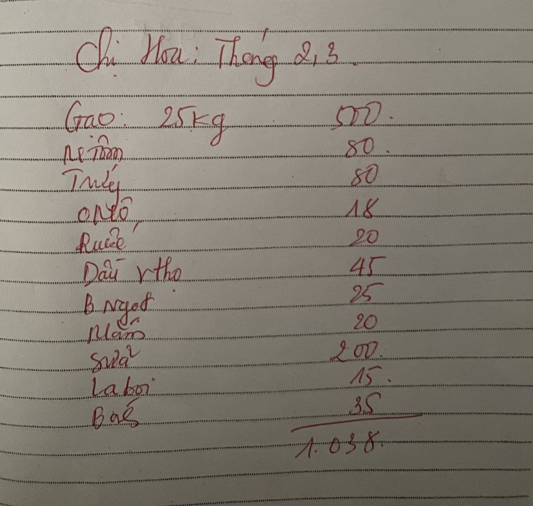 Em chào ngôi nhà NTCM hôm nay em đã mua nhu yếu phẩm tháng 7 cho gia đình bà Hoa và các con cháu mô côi, với số tiền là 500.000đ bao gồm