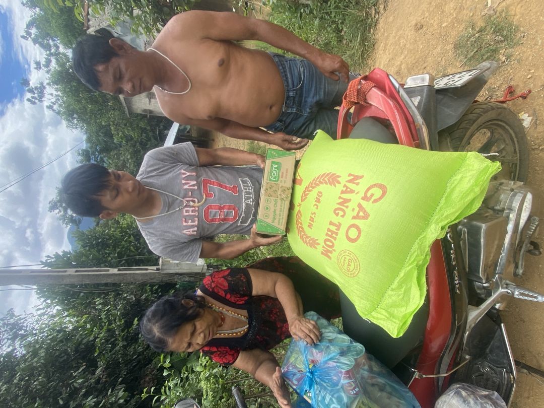 Hôm nay em thay mặt quý anh chị Mtq trong ngôi nhà NTCM trao nhu yếu phẩm tháng 7 cho bà Kan Khoan, bà gửi lời cảm ơn quý anh chị mtq và cầu chúc cho các con luôn bình an và sống lâu để chăm lo cho những người nghèo khổ như mẹ, mẹ nói lần đầu tiên trong đời được ăn gạo ngon vô đa vô thịt và thức ăn ngon bà rất biết ơn quý anh chị đã cưu mang gia đình bà.