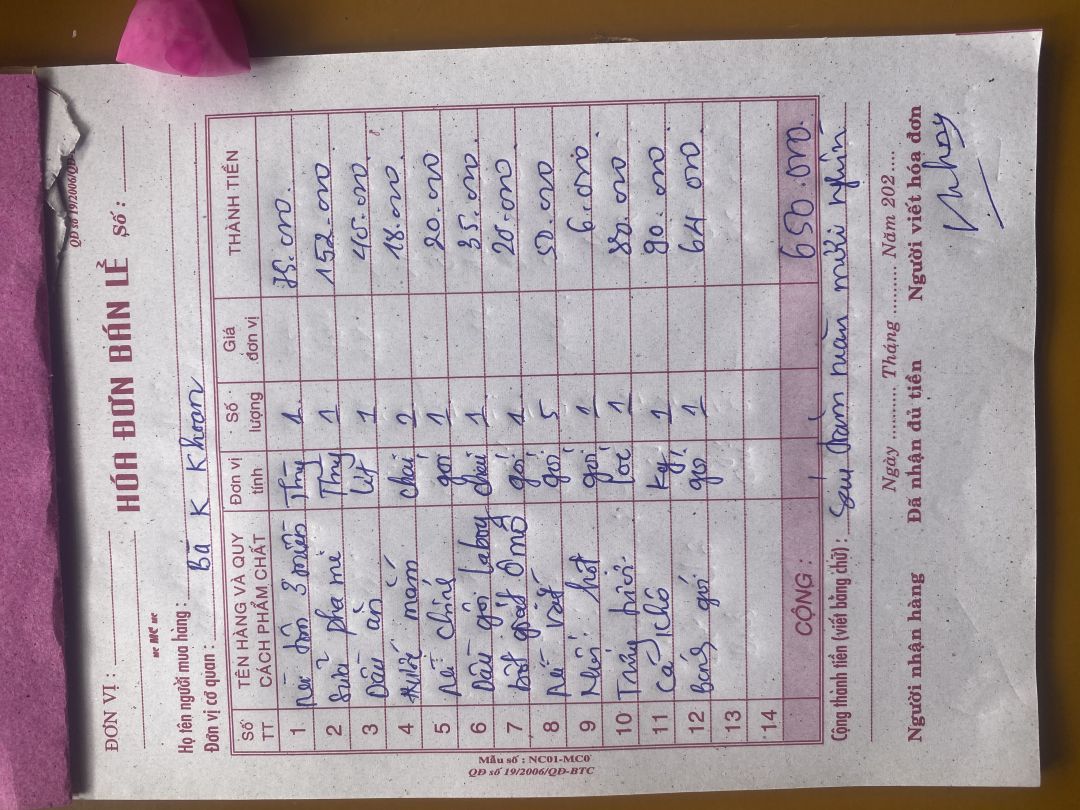- 650,000đ dùng cho mua nhu yếu phẩm.