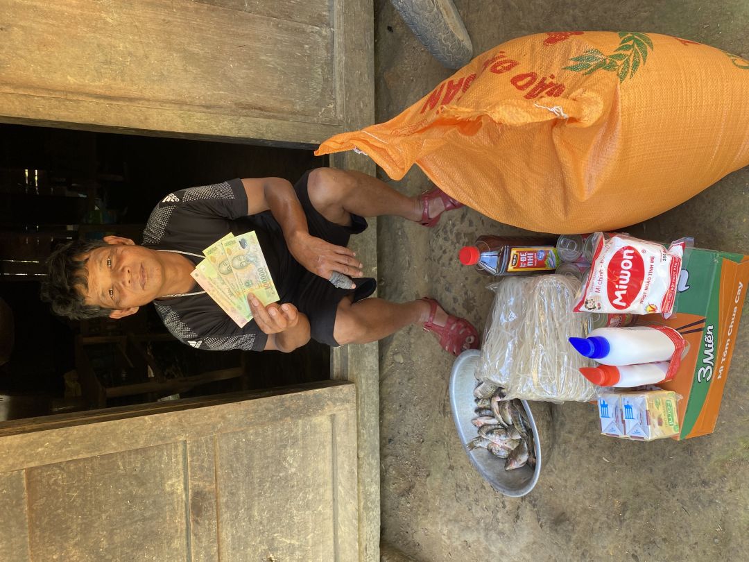 Hôm nay em thay mặt quý mtq giúp đỡ bà Kan Khoan mua nhu yếu phẩm tháng 12 ạ. Trong cái giá rét của vùng núi phía Tây của Thừa Thiên Huế bà đã nhờ em mua gạo và thực phẩm hết với số tiền 1.150.000đ Bà biết ơn quý MTQ rất nhiều