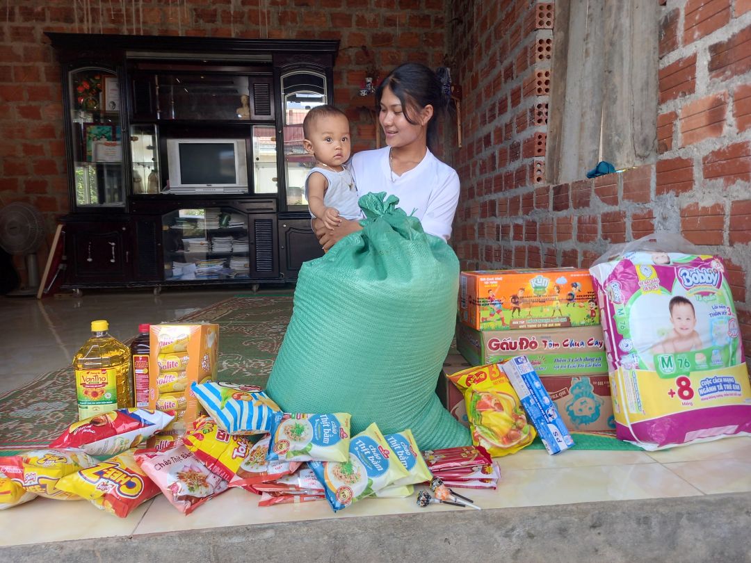 Phần nhu yếu phẩm giúp gia cảnh trị giá 650.000đ và tiền sữa cho Phi là 300k