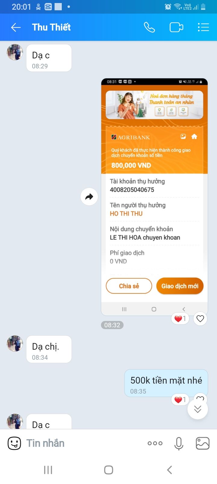 Theo ThaiDzuy được biết hoàn cảnh này bạn Alny Tu vẫn chuyển tiền đều đặn đầu tháng tới tài khoản cô Le Thi Hoa.