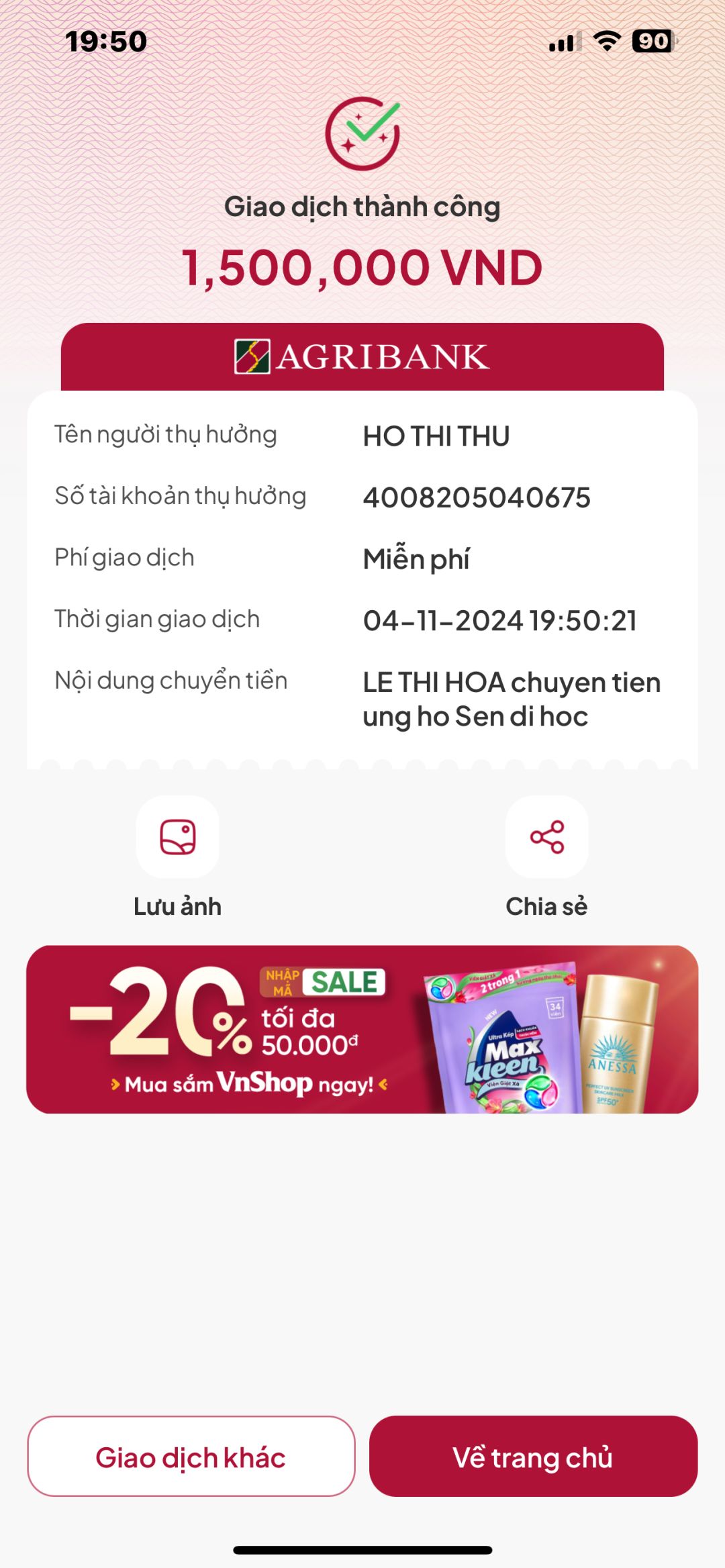 Cảm ơn cô @Hòa Lê đã trung chuyển tiền hàng tháng cho gia đình em Sen.