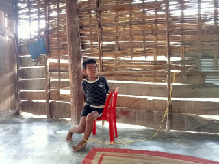 Trong căn nhà nhỏ đơn sơ, trống trải và siêu vẹo, chật chội và dột nát là nơi trú ngụ của gia đình có 6 thành viên với 3 con trai, vợ chồng chị cùng người bố ruột của chị bị bệnh tâm thần đang sống lang thang. Điều đáng trăn trở là đứa con trai đầu lòng sinh năm 2014 cũng bị bệnh tâm thần, không có khả năng kiểm soát hành vi của mình.