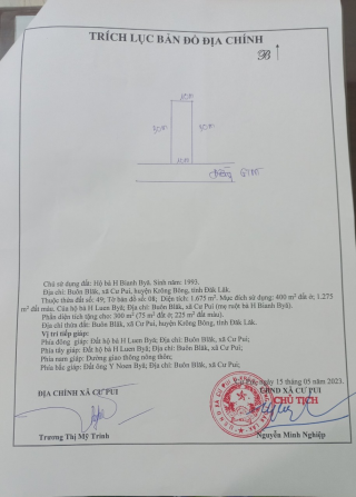 Trích lục bản đồ địa chính mảnh đất thuộc chủ quyền sở hữu của gia đình chị Bianh Byă